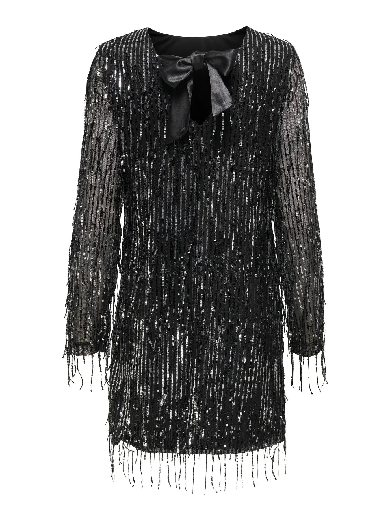 Only Onlspacy Ls Sequins Bow Dress Couleur: 4877201 Black W. Silver Sequins