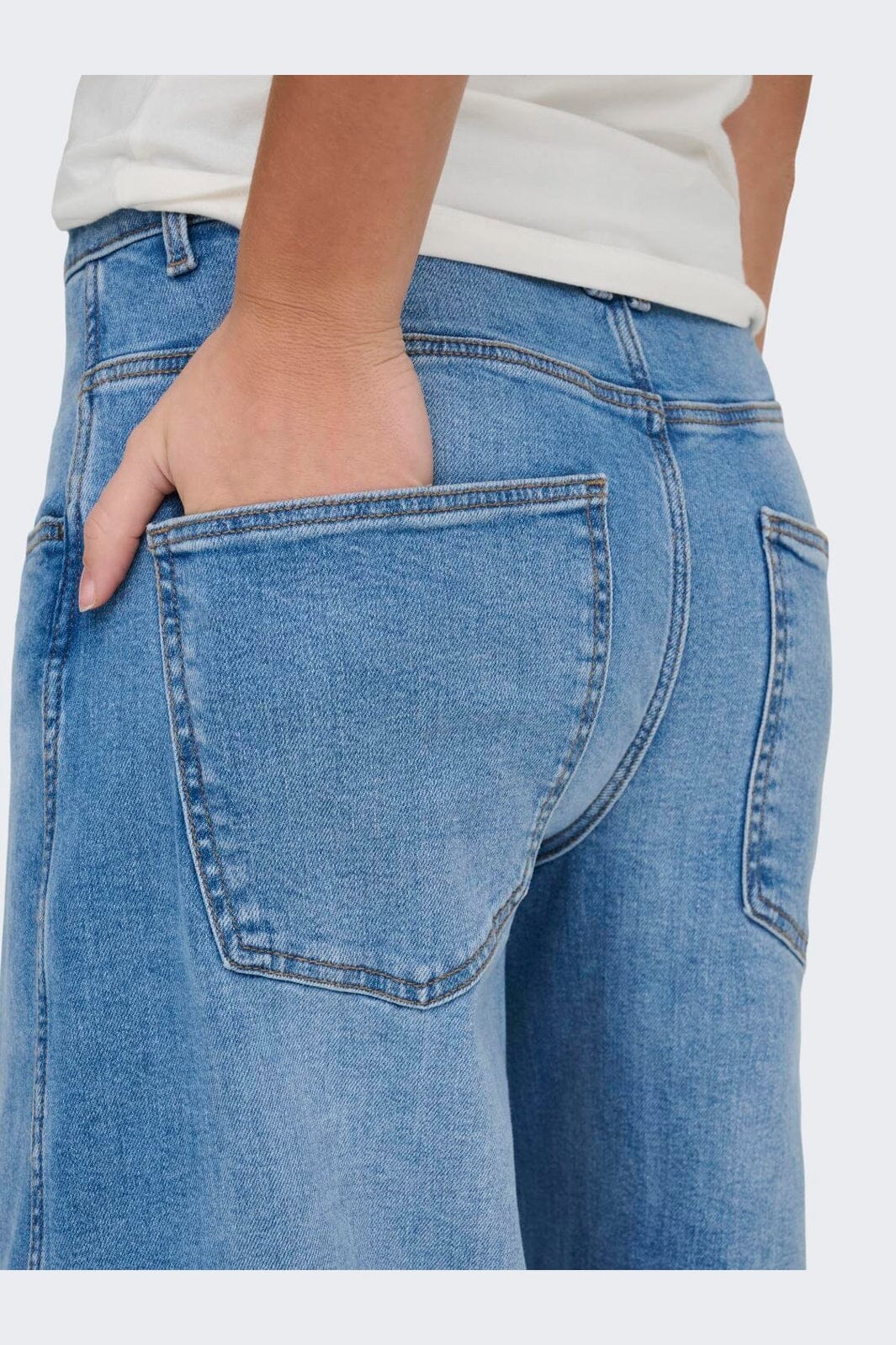 Jean Only en denim bleu clair avec coupe barrel. La taille haute et la coupe ample offrent une silhouette décontractée.