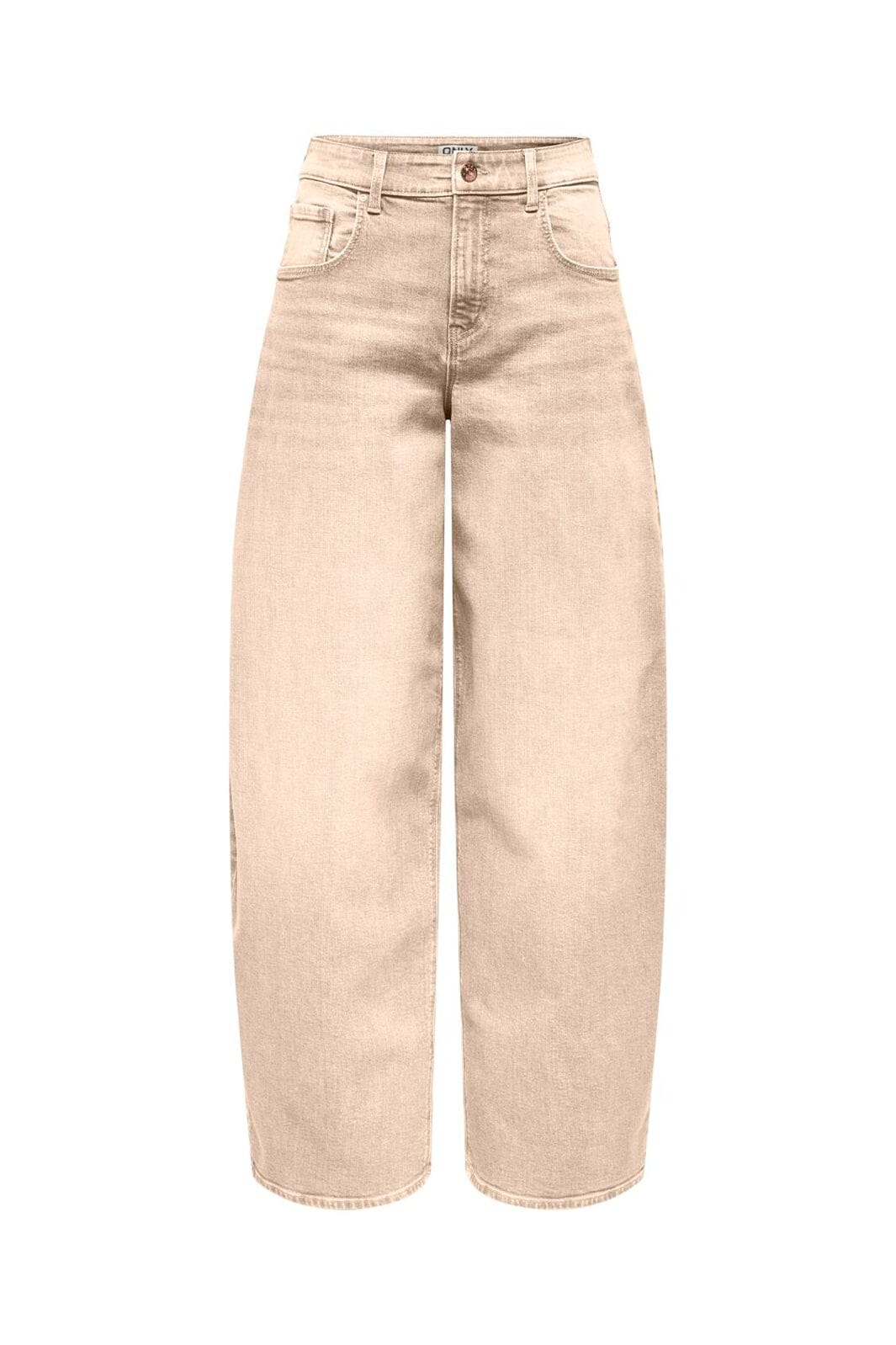 Jean beige clair de la marque Only avec taille haute et coupe ample. Confectionné en coton avec élasthanne pour une grande liberté de mouvement et un confort au quotidien.