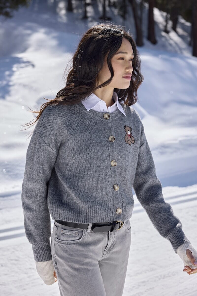 Cardigan gris de Only avec des détails en teddy. Le cardigan a une coupe ample avec des bords côtelés aux poignets et en bas.