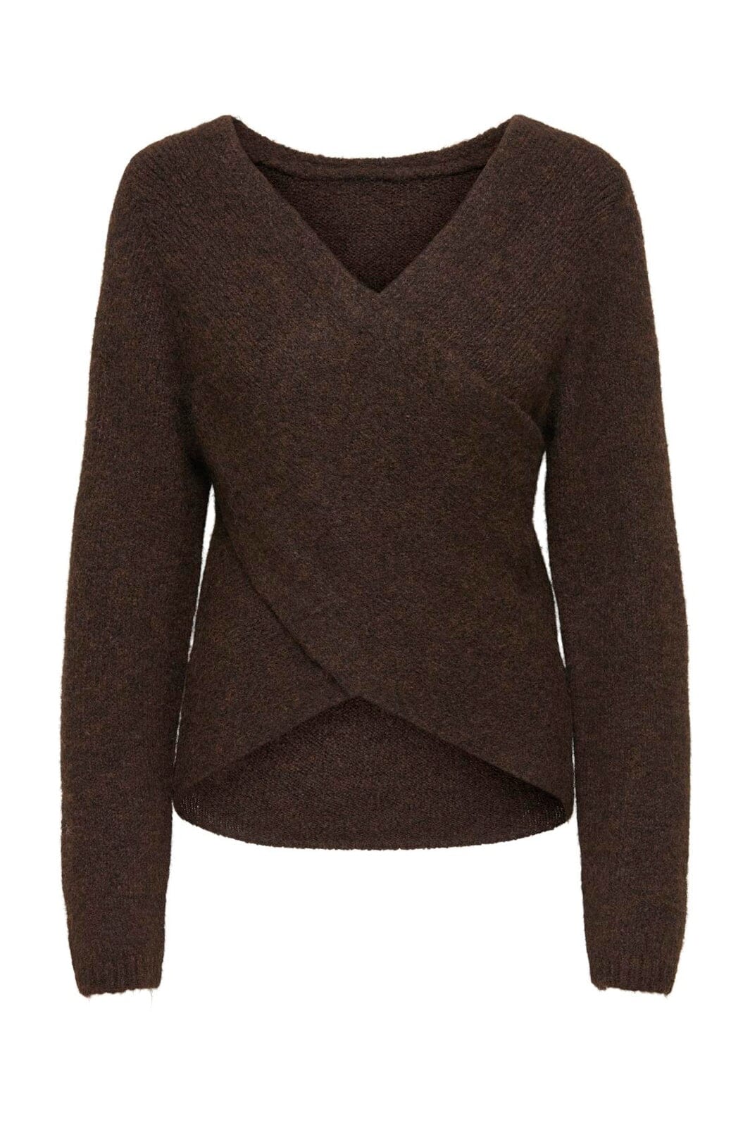 Pull en tricot réversible de Only en couleur marron foncé. Le pull a un design en V à l'avant et un col rond à l'arrière.