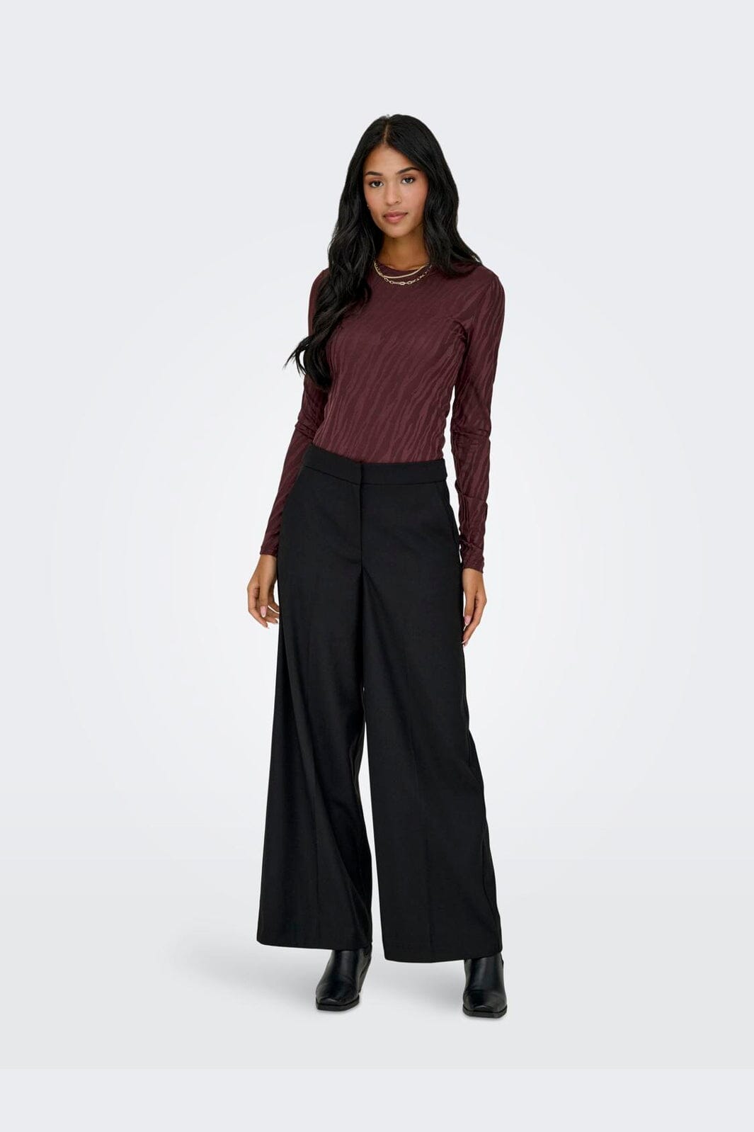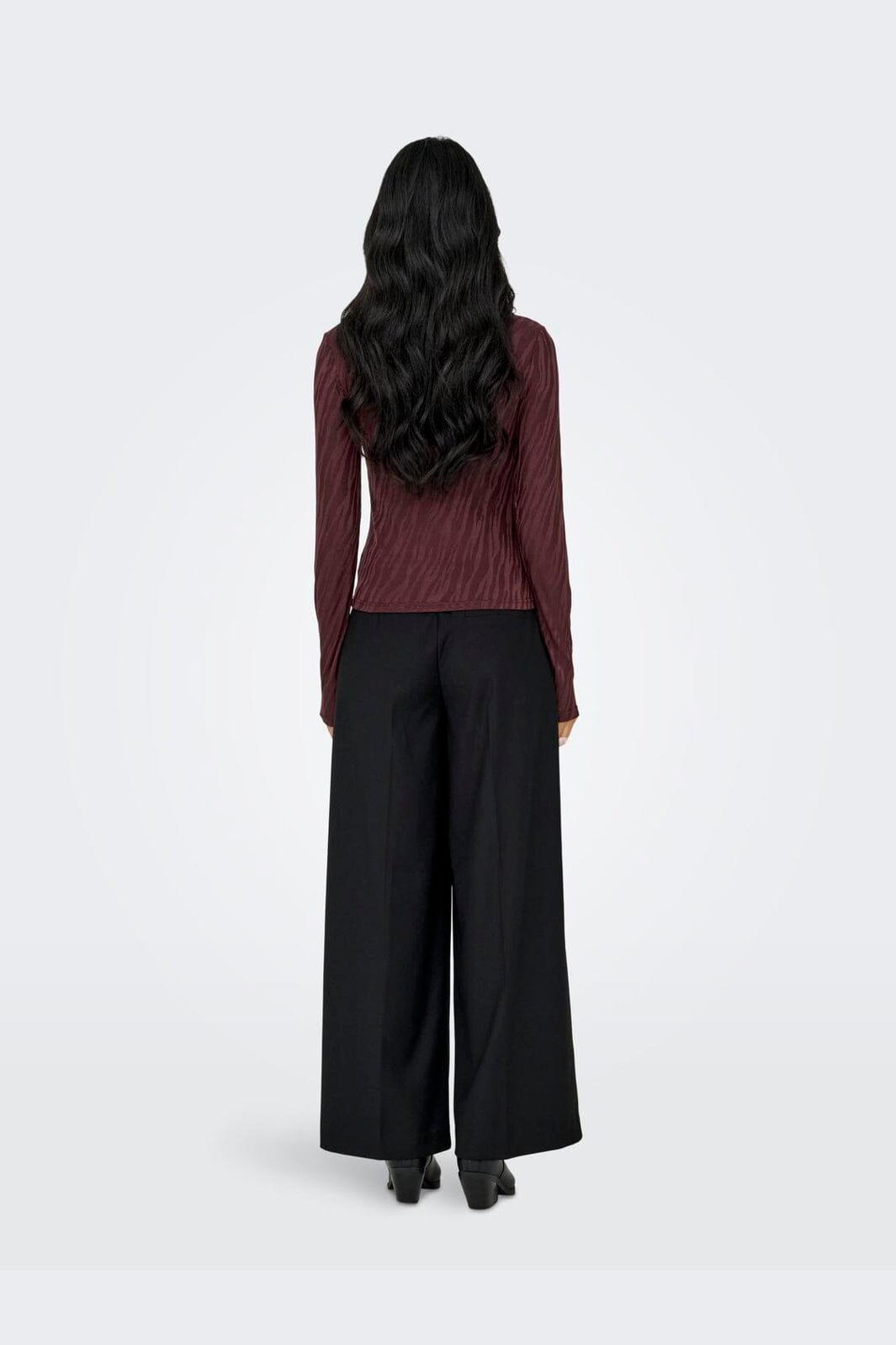 Top à manches longues de Only avec imprimé zèbre en couleur chocolat foncé. Le top a un col rond et une coupe slim fit qui offre une silhouette ajustée.