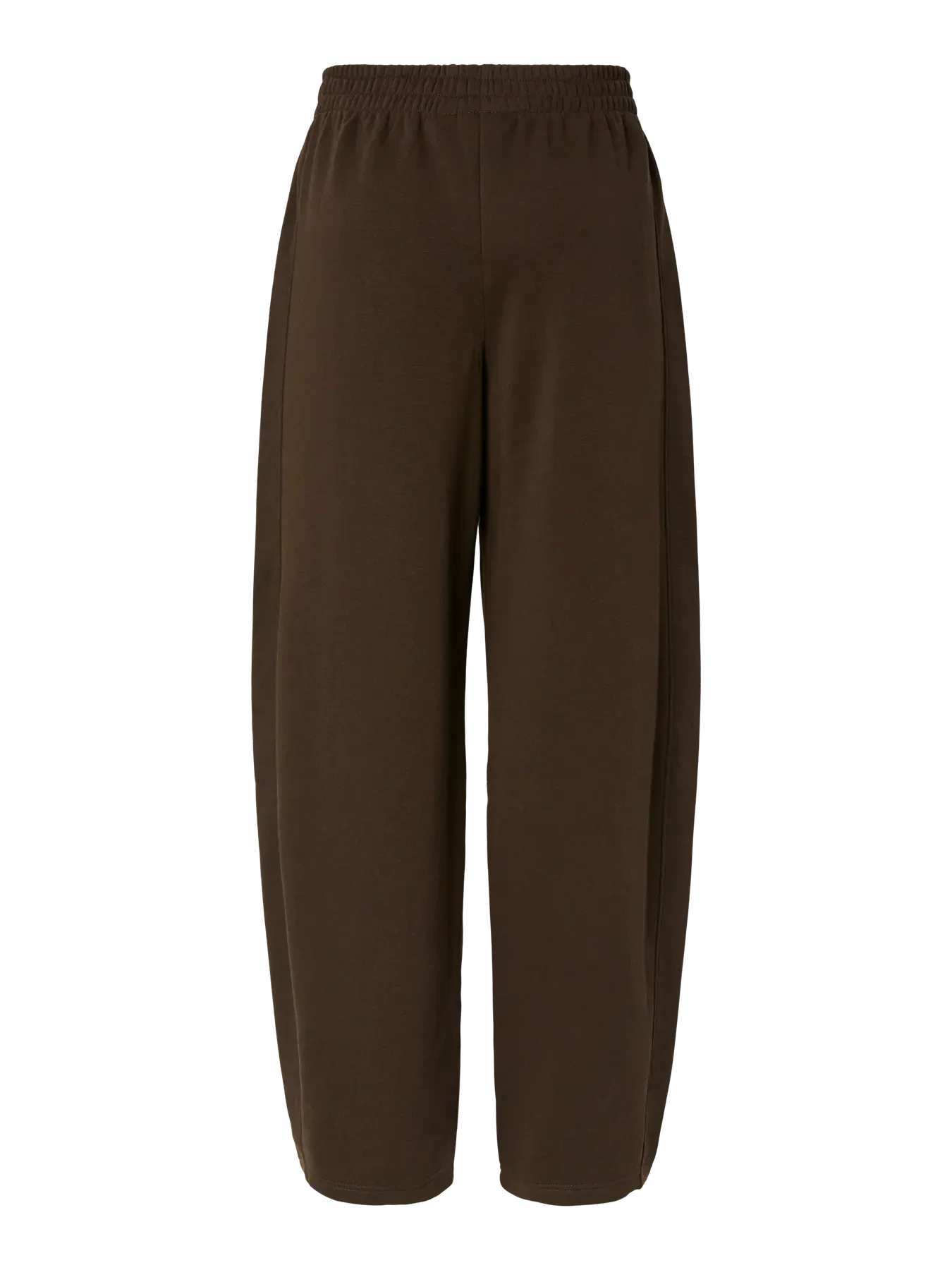 Pantalon barrel marron de Pieces, confectionné dans un mélange de coton et de polyester. Le pantalon présente une taille classique et une coupe ample.