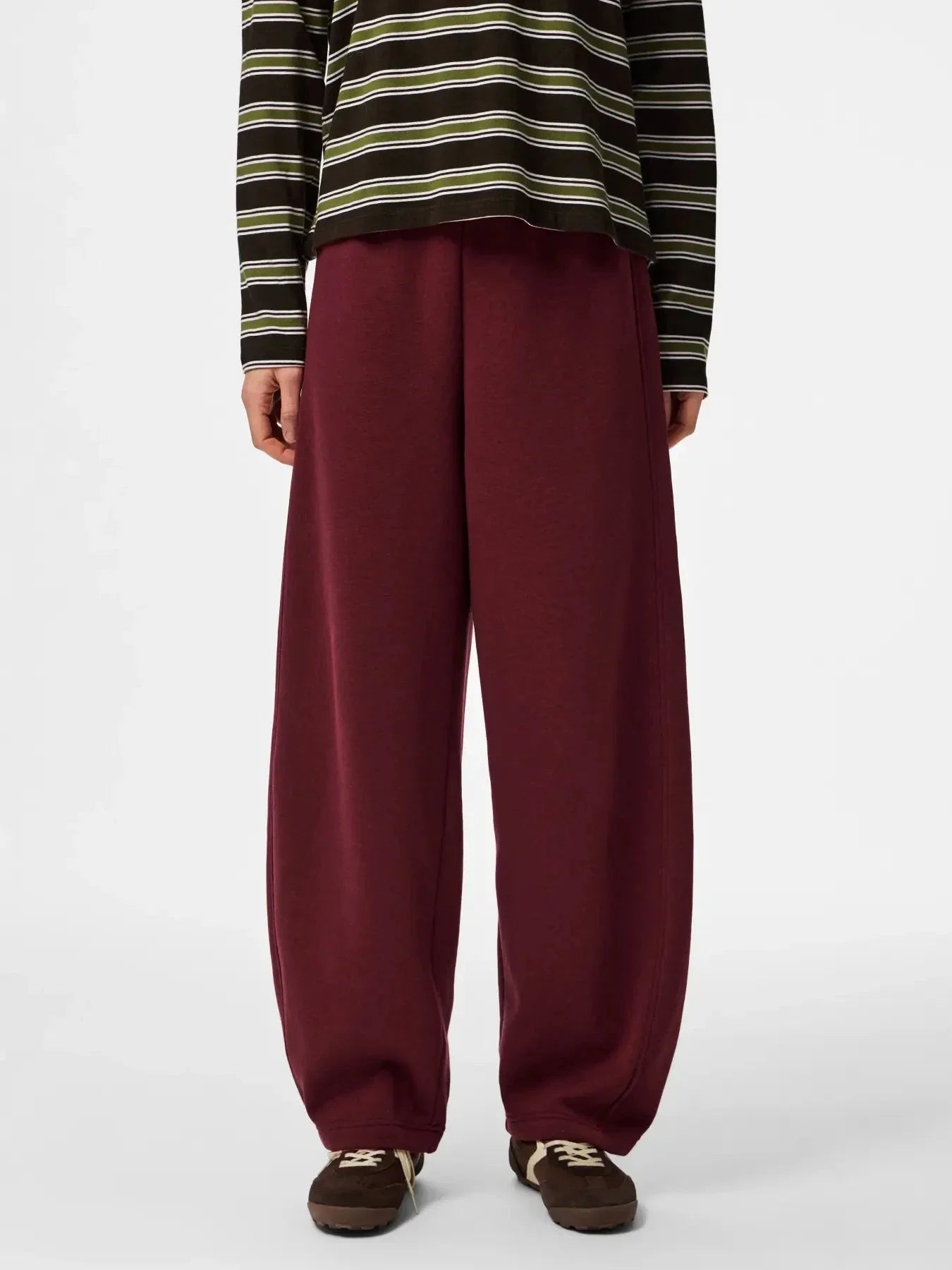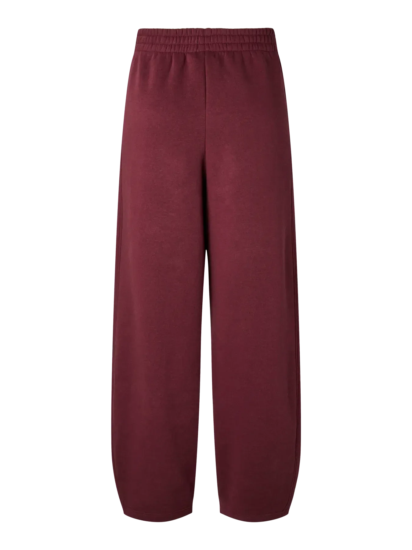 Pantalon barrel de Pieces dans une couleur brun rouge profond. Le pantalon présente une coupe ample avec jambes larges et taille élastiquée.