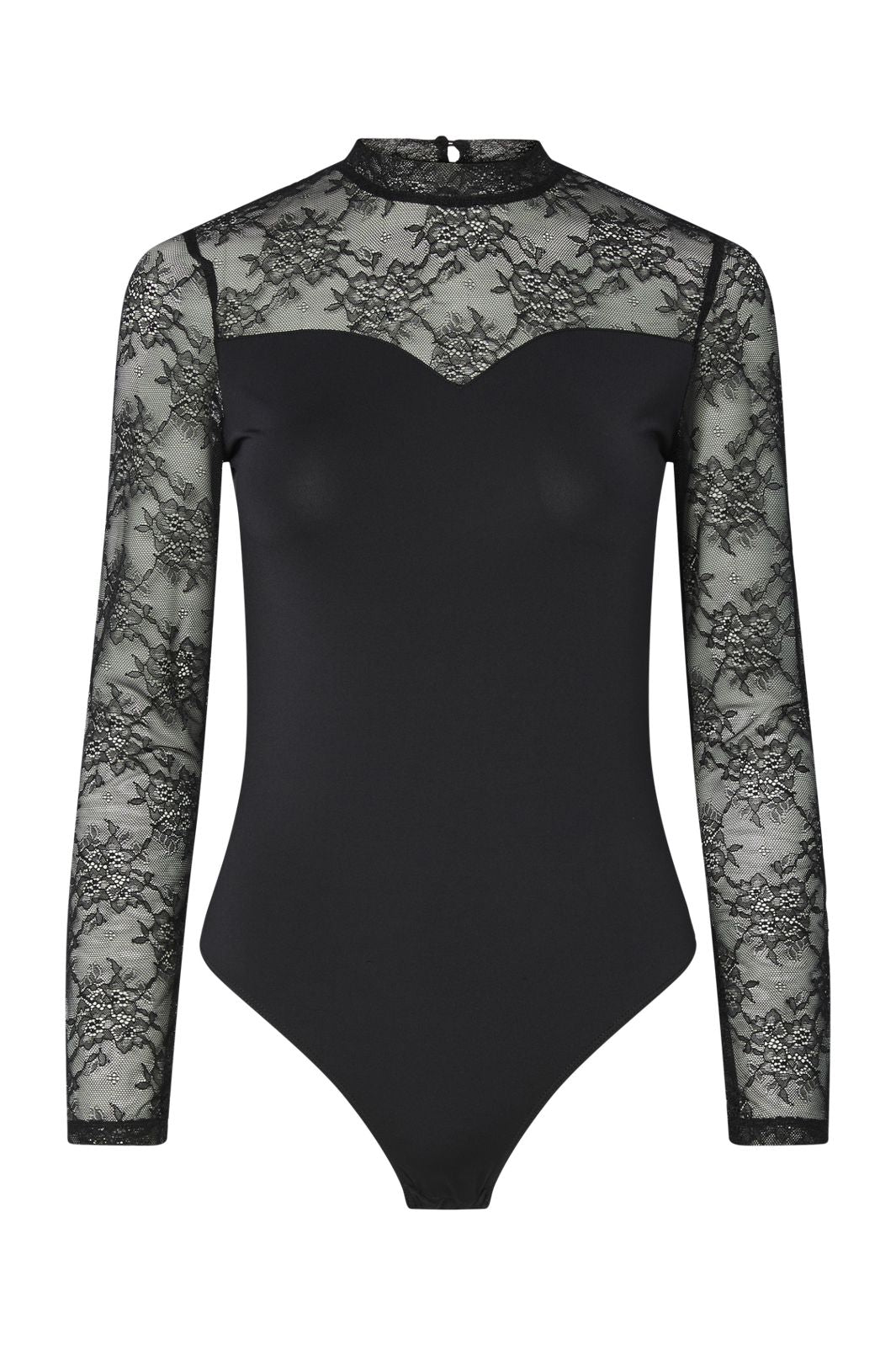 Pieces Pcmilly Ls Lace Bodystocking Couleur: 4803127 Black