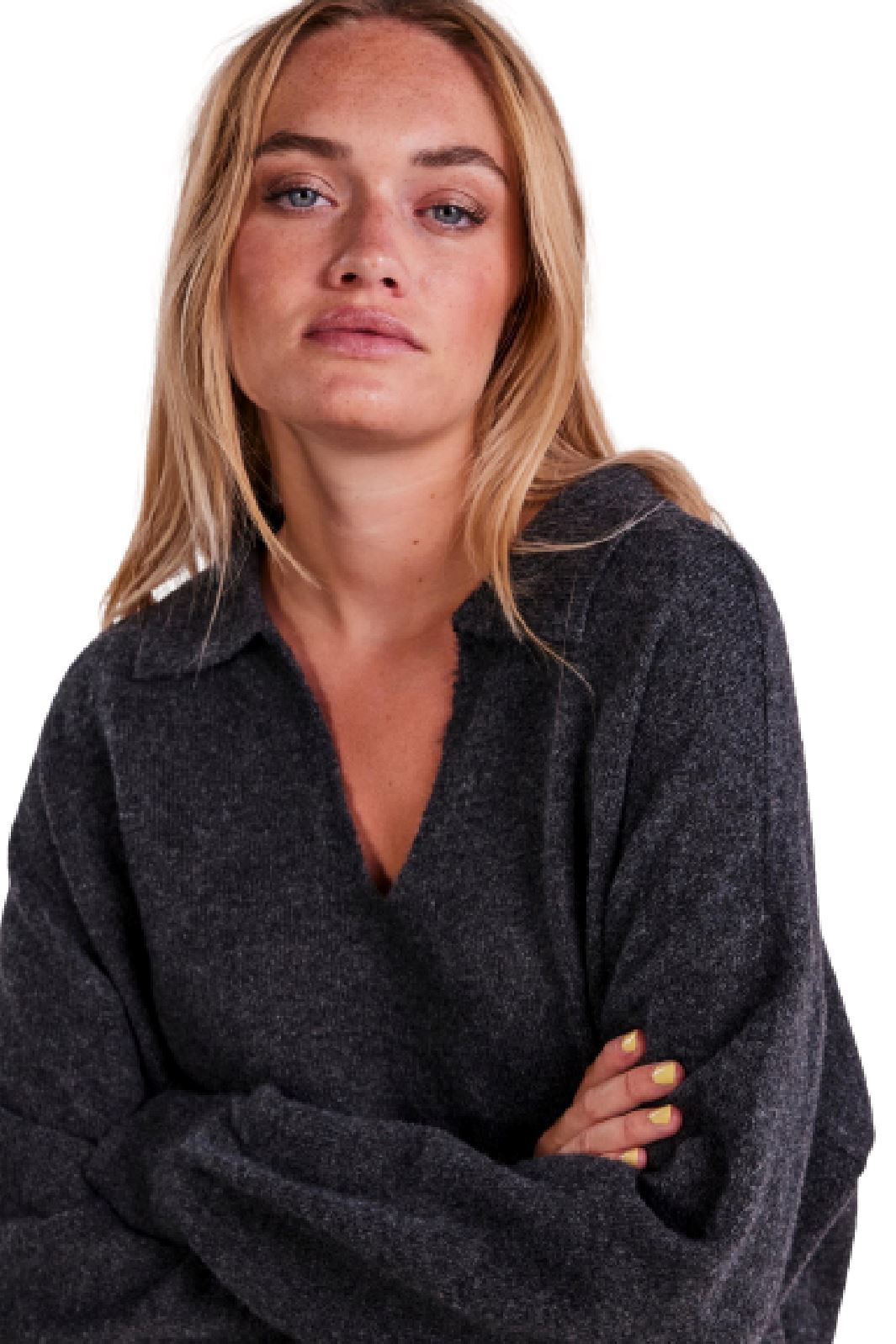Pieces Pcnoola Ls Oversize Polo Knit Couleur: Dark Grey Melange