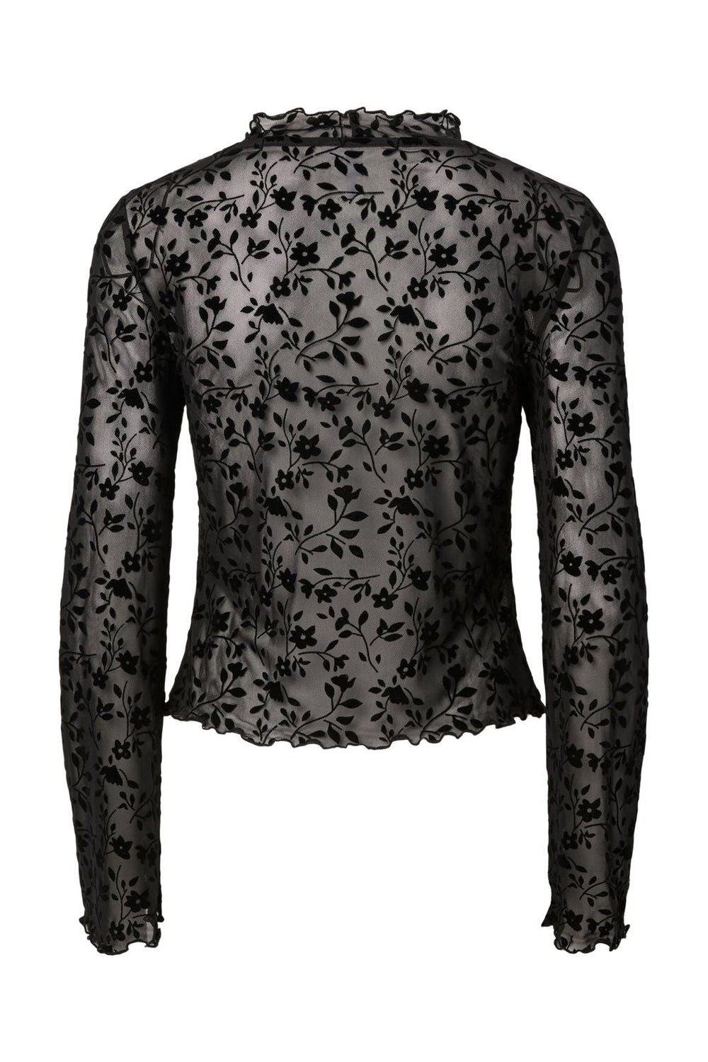Robe noire de Pieces en coton brodé avec décolleté en V et fines bretelles. La robe présente un motif de trous sur toute la surface et un ourlet ondulé en bas avec de jolies découpes.