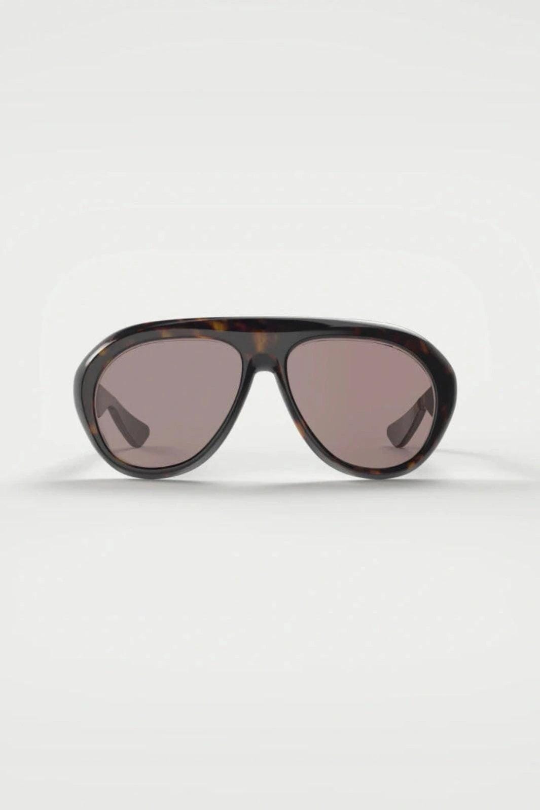 Lunettes de soleil Rotate de style aviateur avec un motif écaille de tortue brun. La monture présente une forme classique avec double pont et verres teintés.