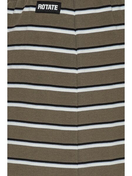 Jupe en jersey Rotate dans une nuance kaki verte à rayures. La jupe présente une taille haute et une coupe slim fit.