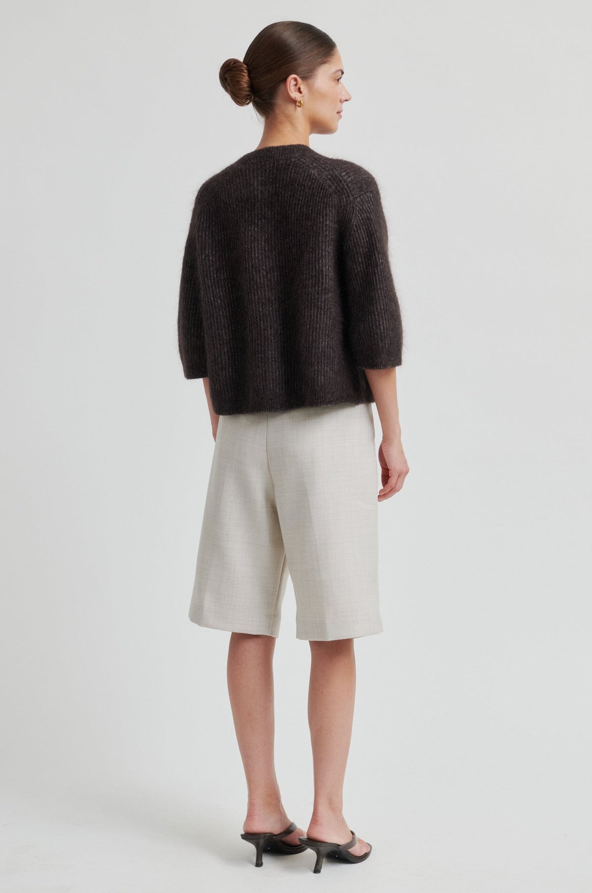 Cardigan côtelé marron foncé de Second Female. Confectionné dans un mélange de mohair et de laine.