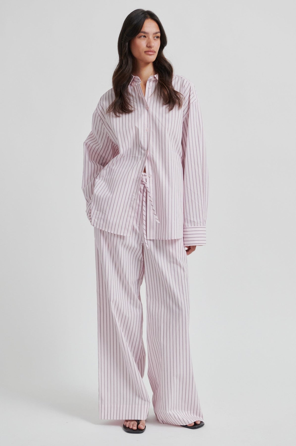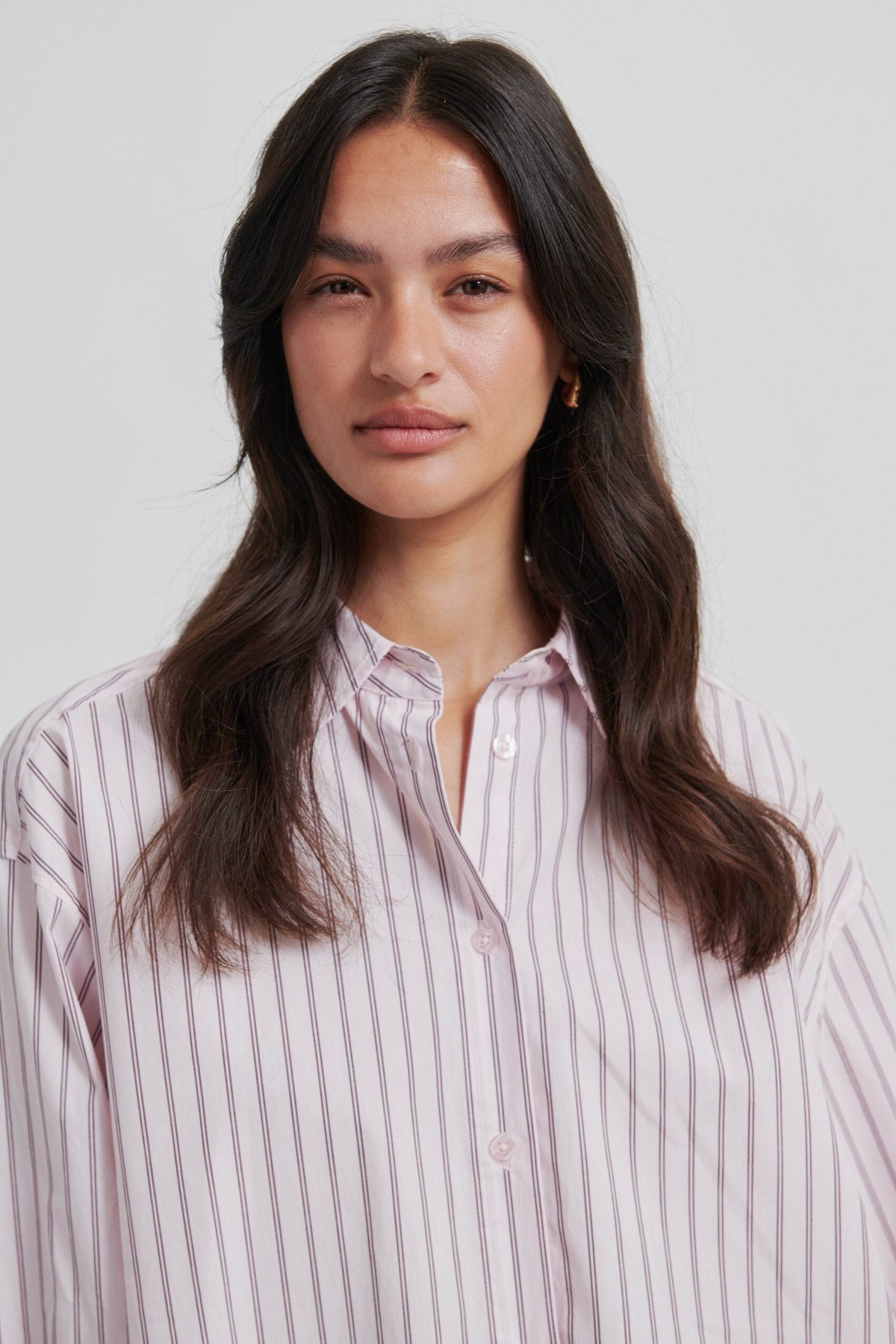 Une chemise rayée Second Female, confectionnée en 100 % coton dans une nuance lilas clair avec des rayures verticales.