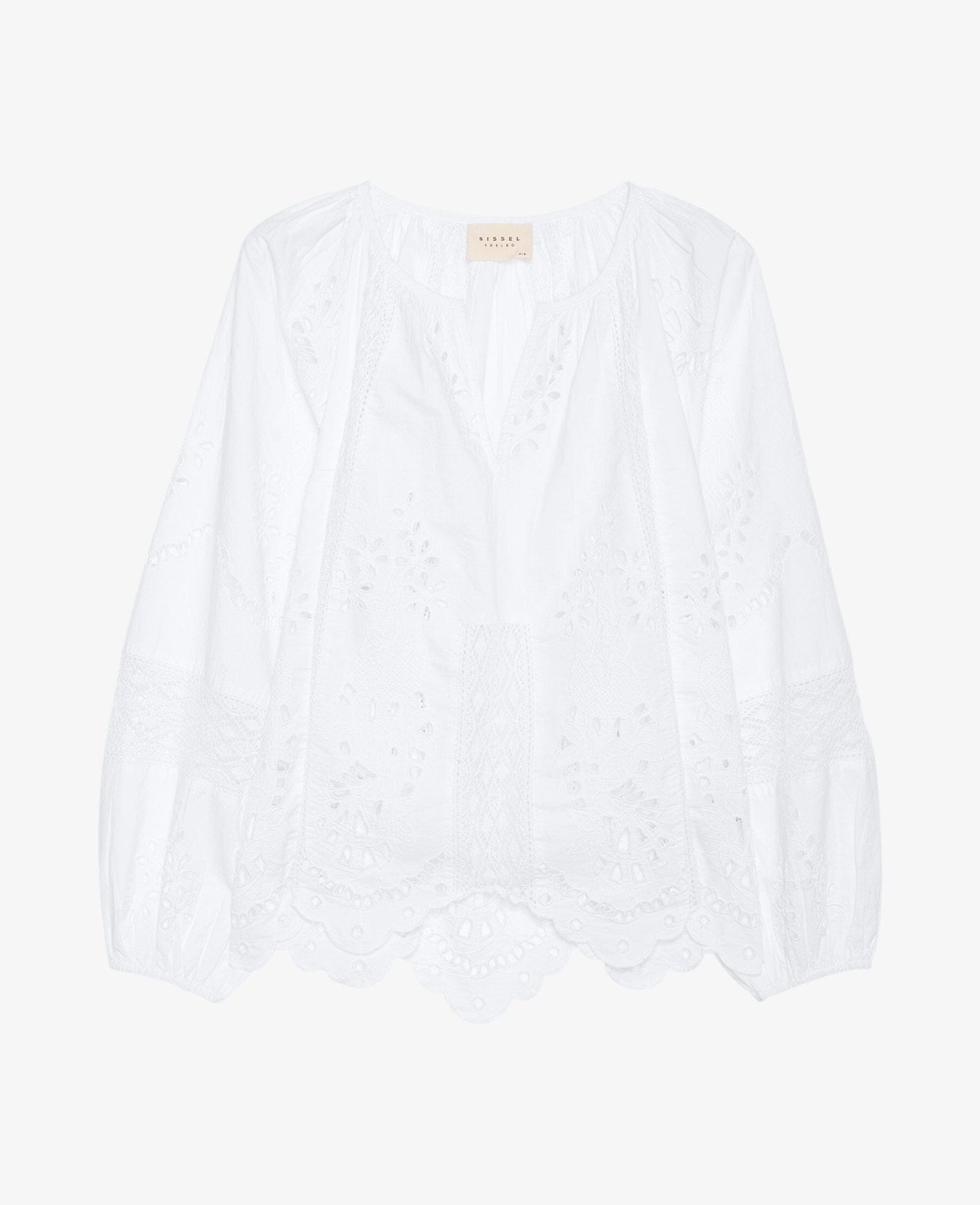 Haut blanc de Sissel Edelbo dans une nuance écru. Confectionné en 100 % coton biologique avec broderies et dentelle.