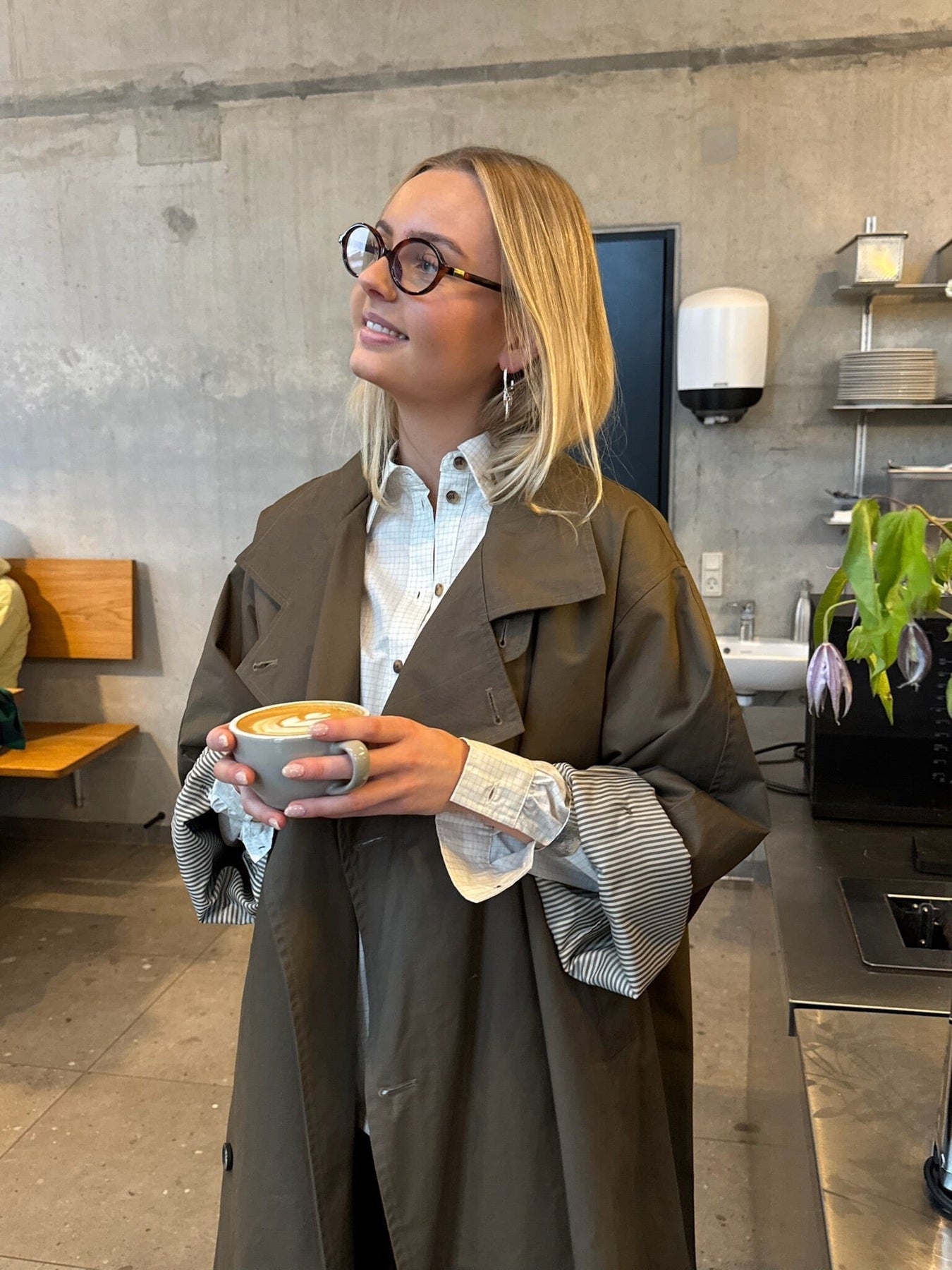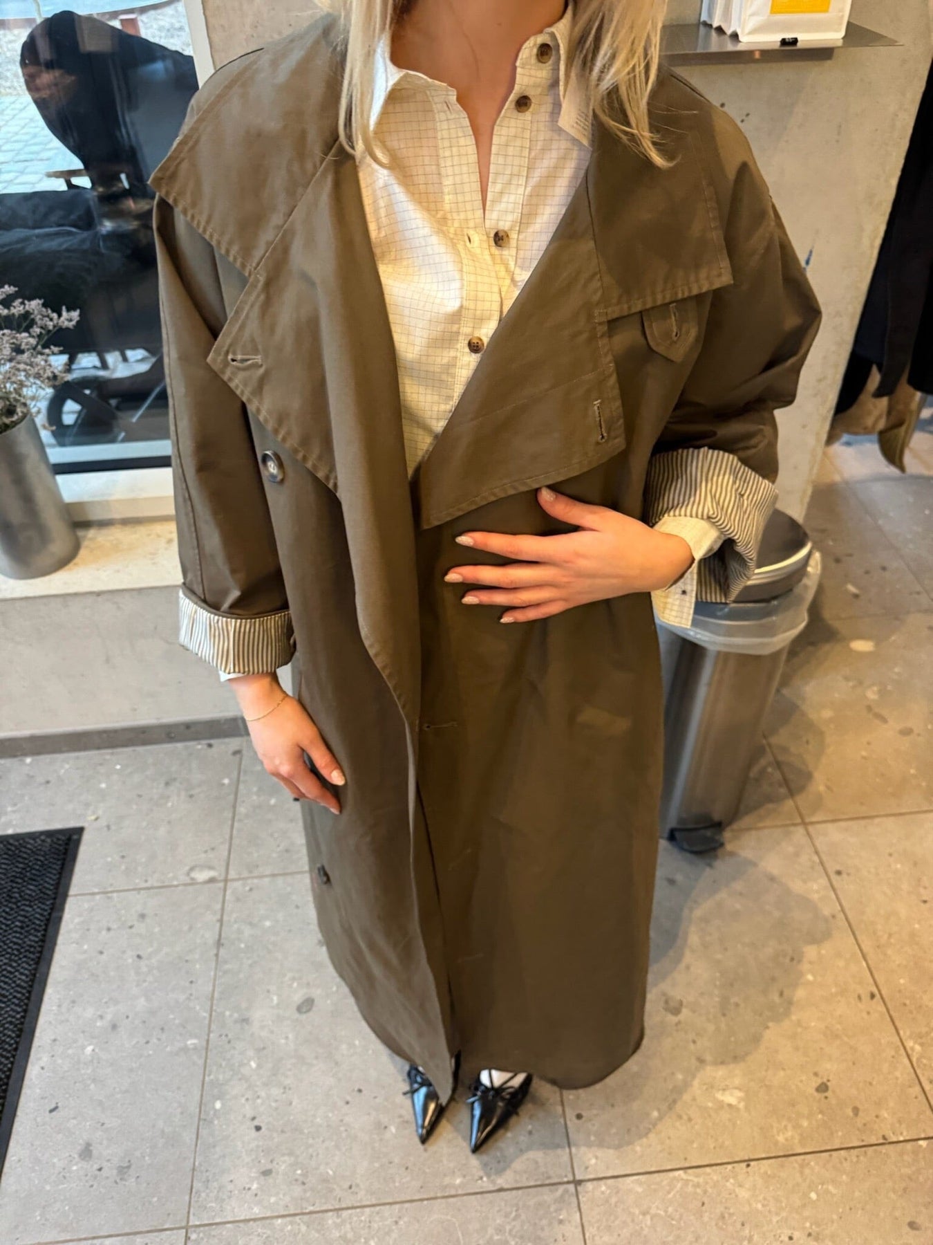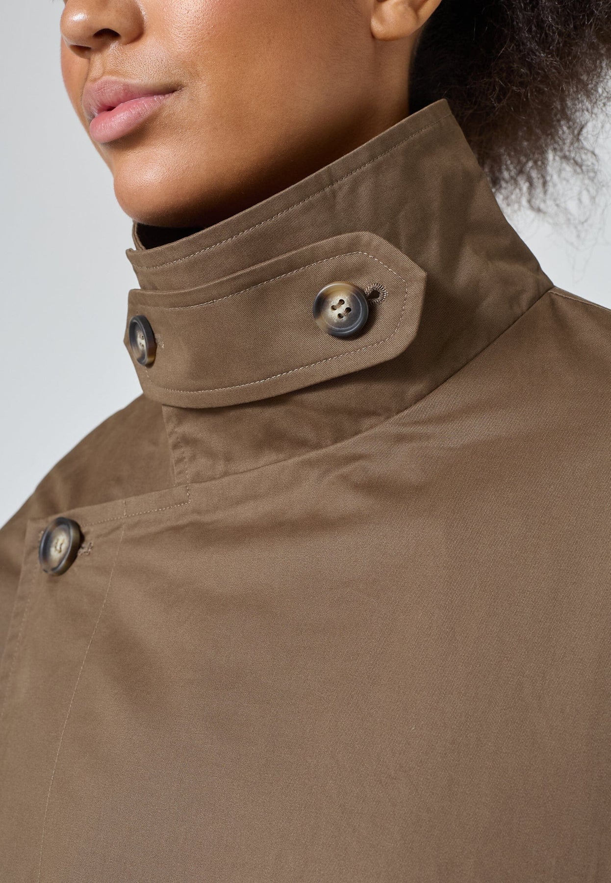 Long trench-coat oversize de Sisters Point dans une teinte brune. La veste est fabriquée en 100 % coton et possède une fermeture à boutons.