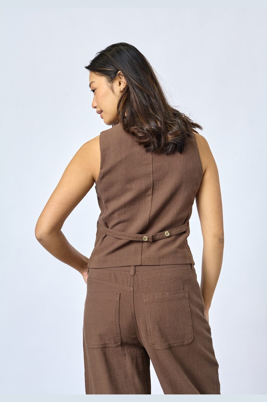 Gilet marron de Sisters Point, confectionné en 100 % coton dans une nuance chocolat. Le gilet présente une coupe sans manches avec une silhouette slim fit.
