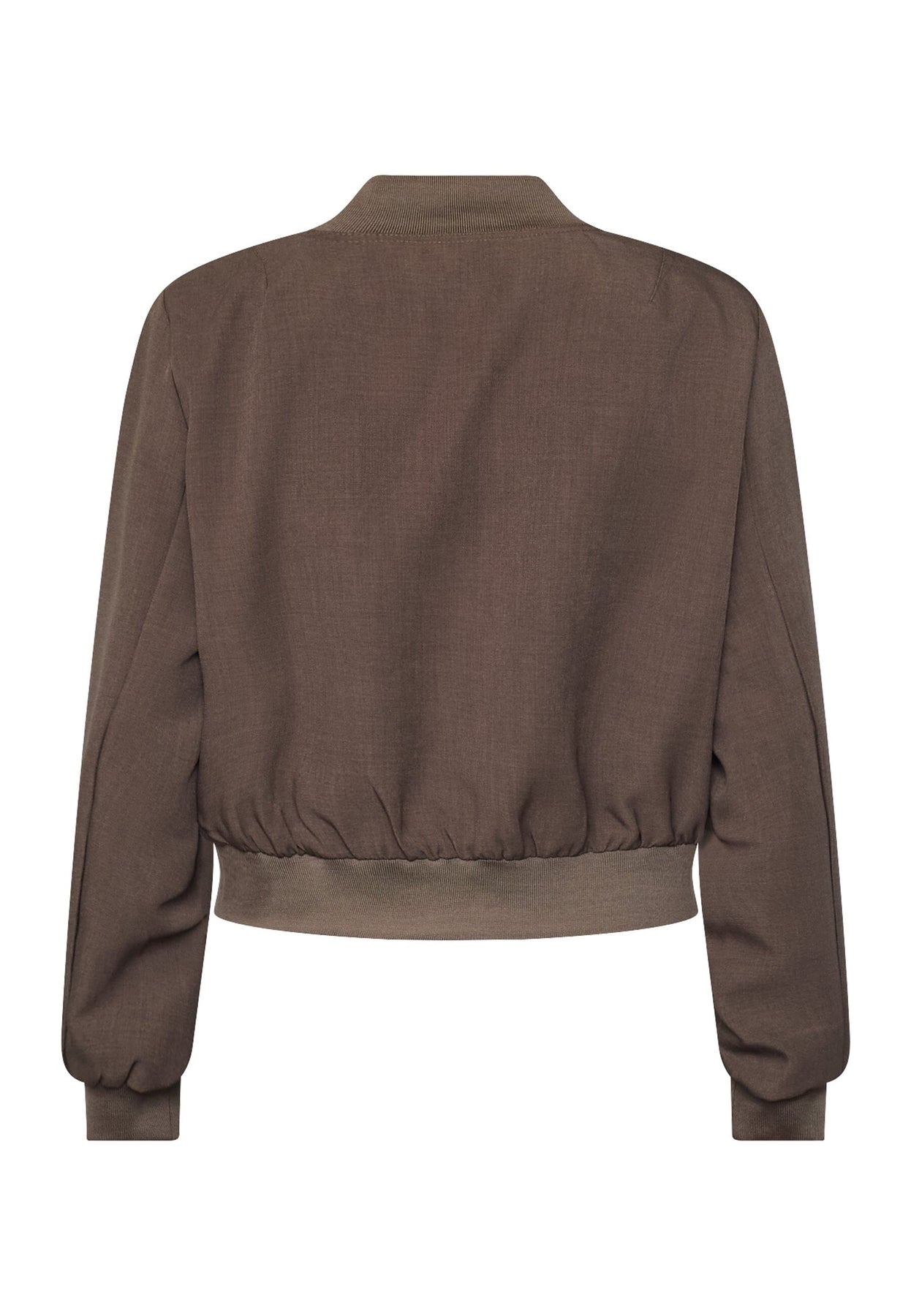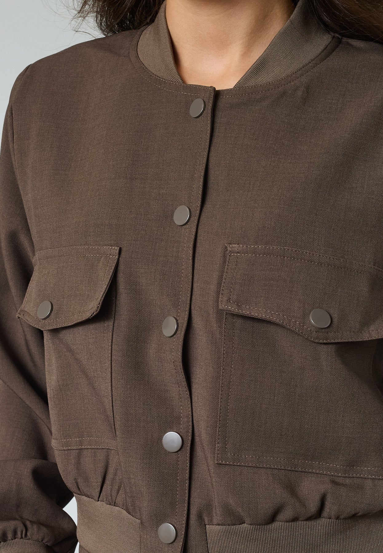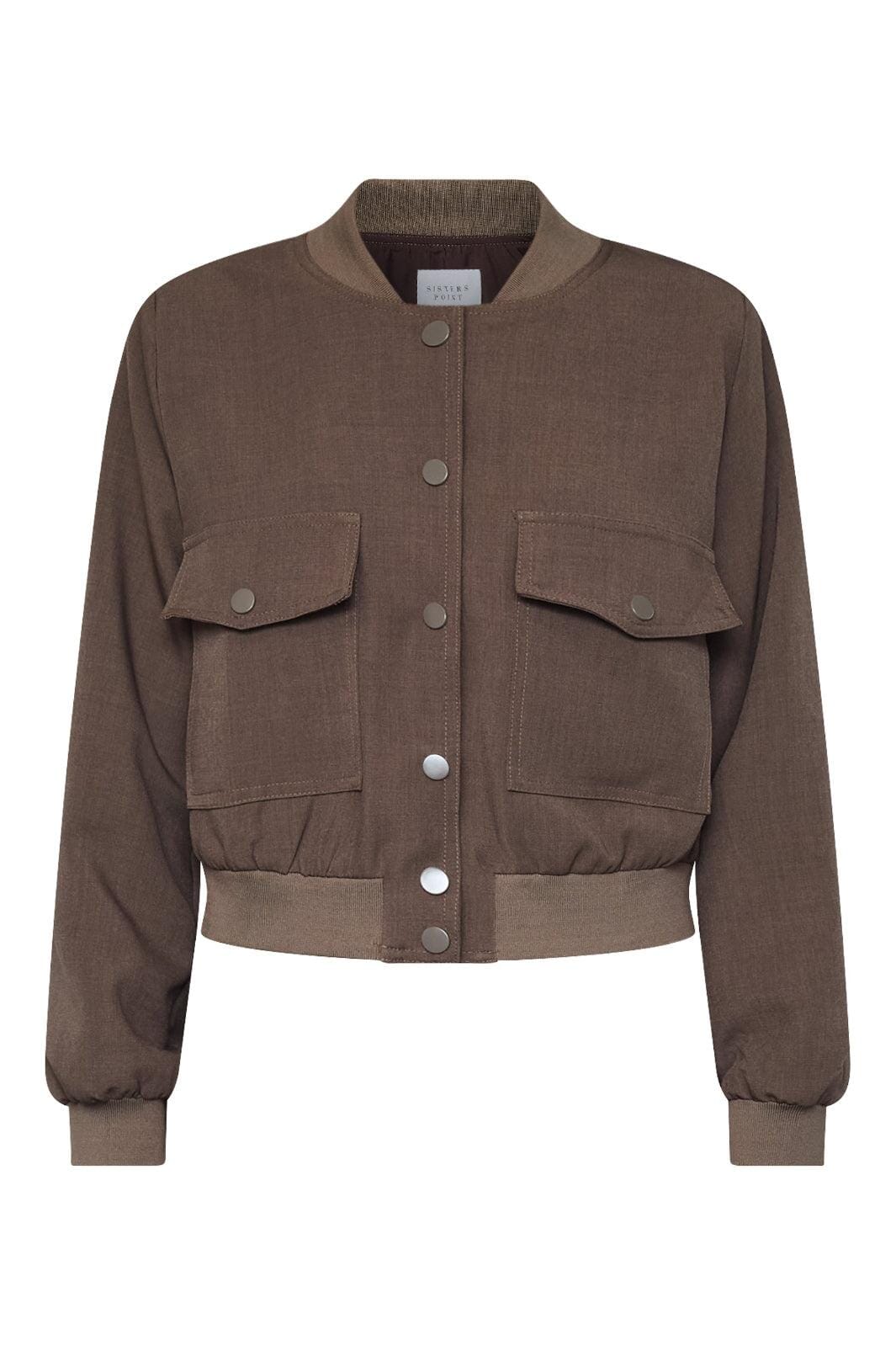 Veste courte de Sisters Point dans une teinte brune. La veste présente des coutures décoratives, des boutons-pression au centre et deux poches poitrine à rabat.