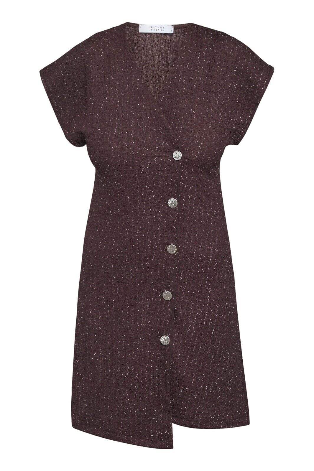 Une robe de Sisters Point de couleur marron avec des fils argentés. La robe a un aspect uni et convient aux occasions festives.