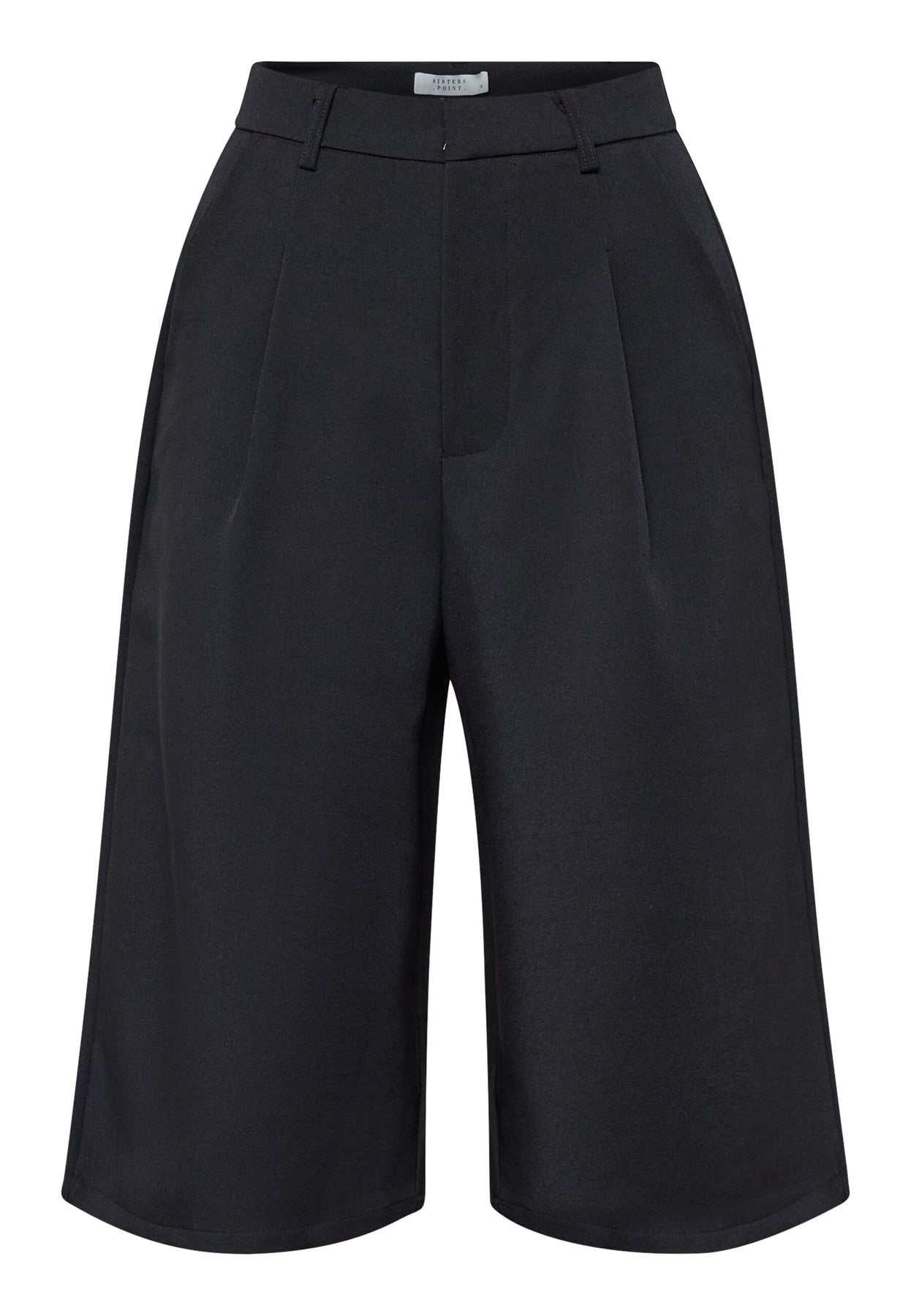 Shorts culotte noirs de Sisters Point avec une coupe ample et une longueur au genou. Les shorts ont une taille haute et des plis sur le devant.