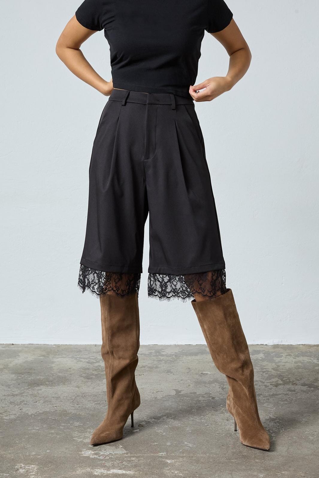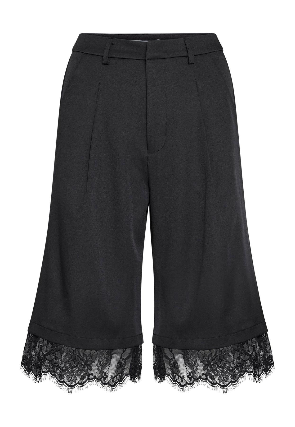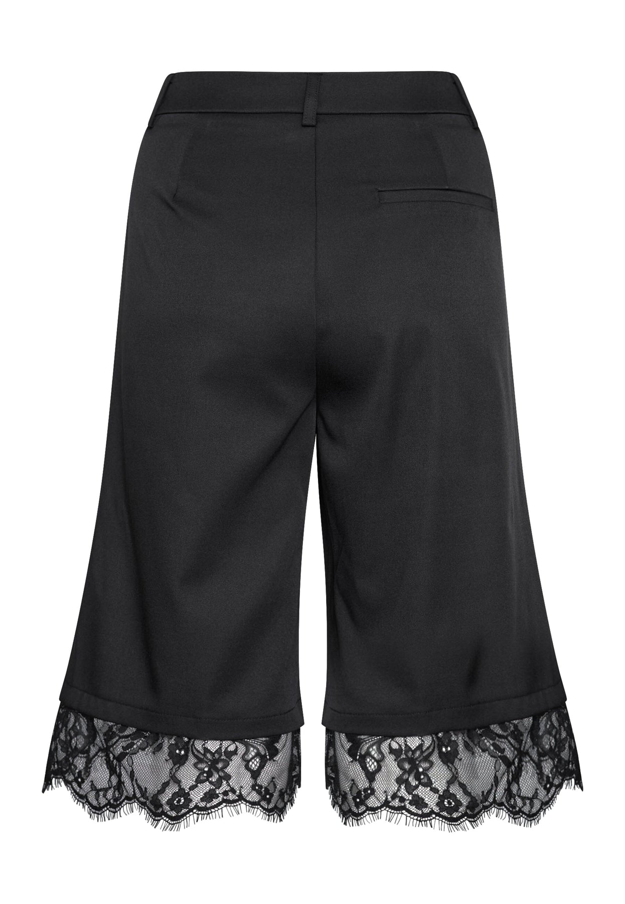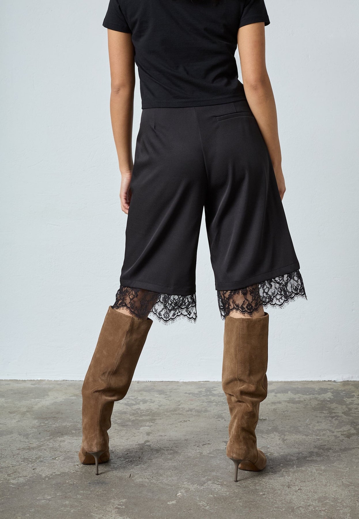 Short noir Sisters Point avec détails en dentelle au niveau des ouvertures de jambe. Le short présente une coupe ample et arrive juste au-dessus du genou.