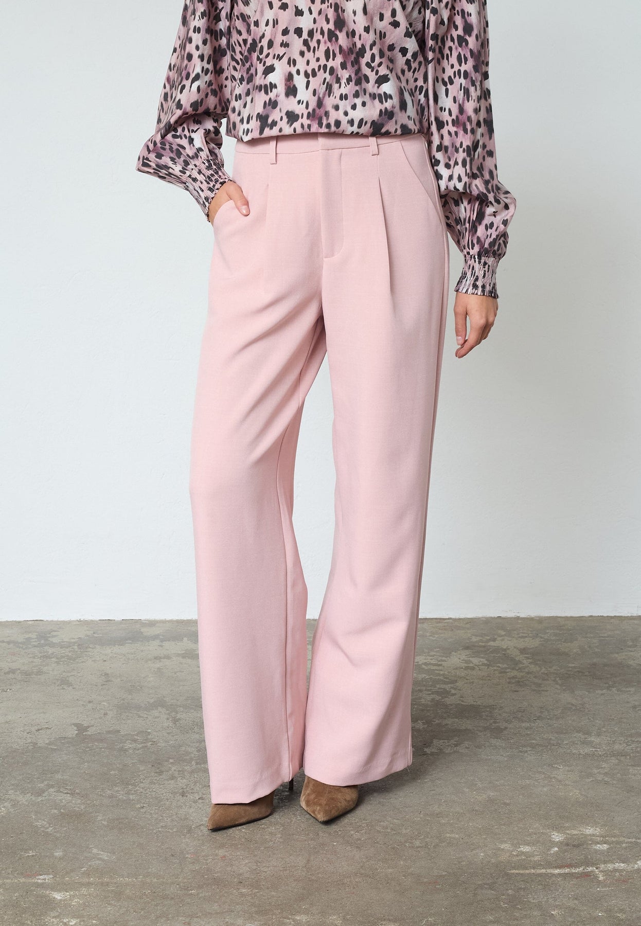 Pantalon lilas clair de Sisters Point avec une coupe ample et des jambes larges. Le pantalon possède des plis sur le devant et des poches latérales pratiques.