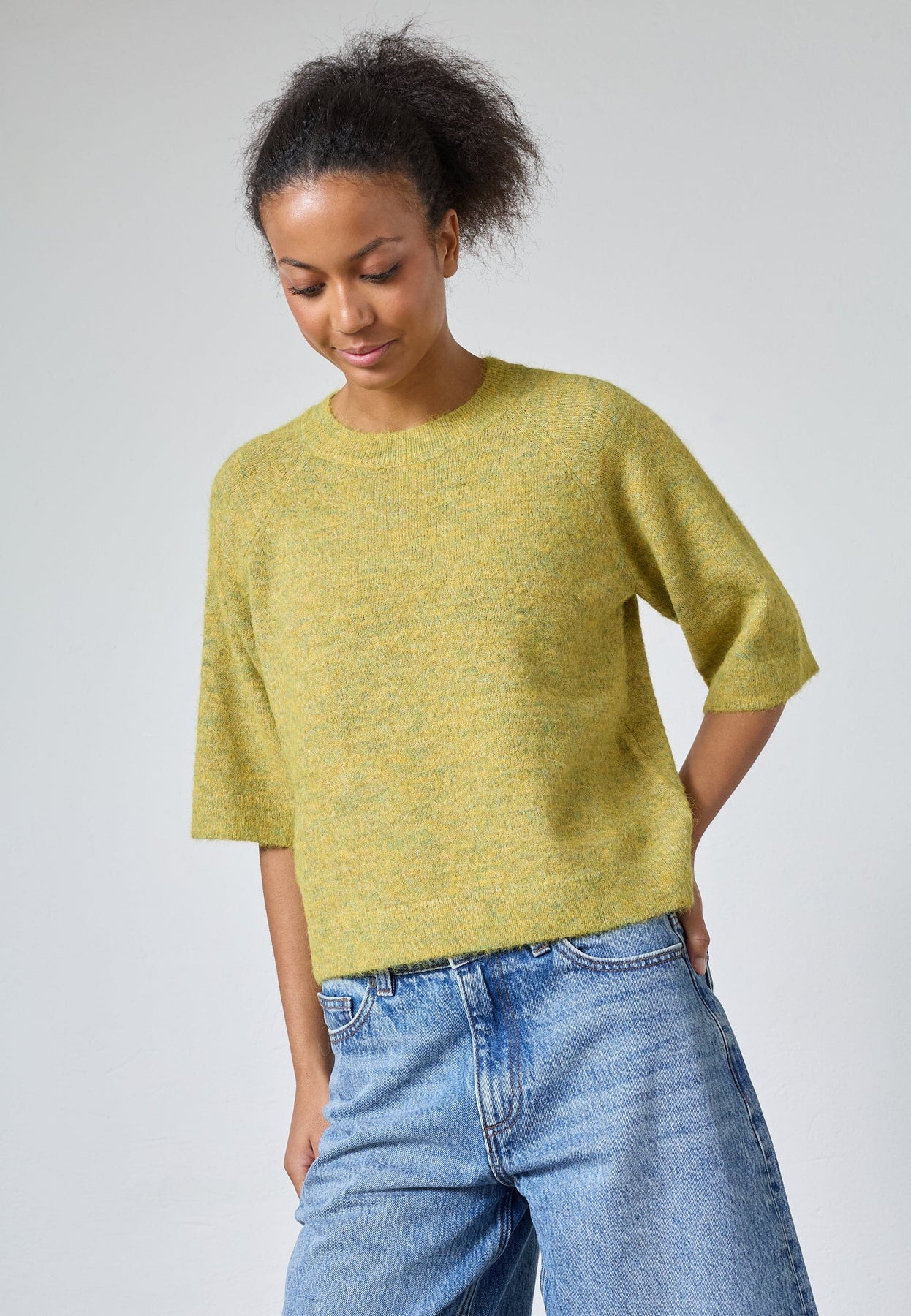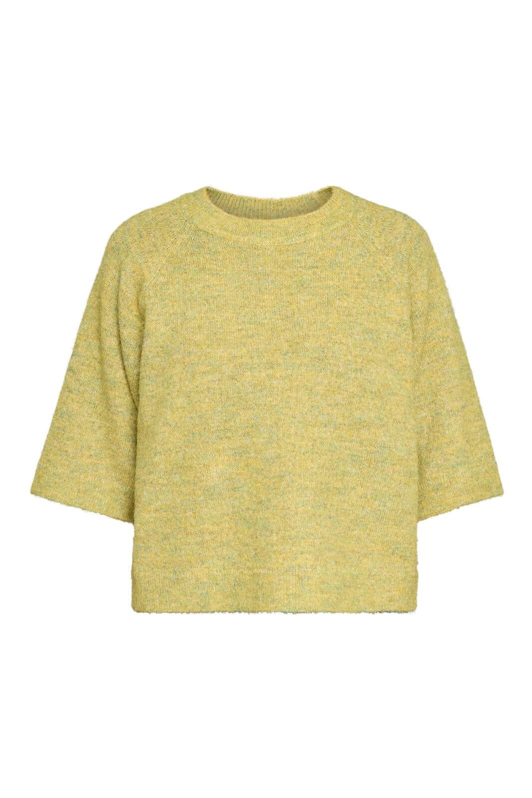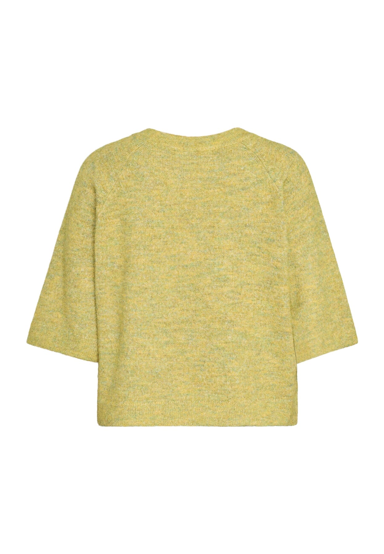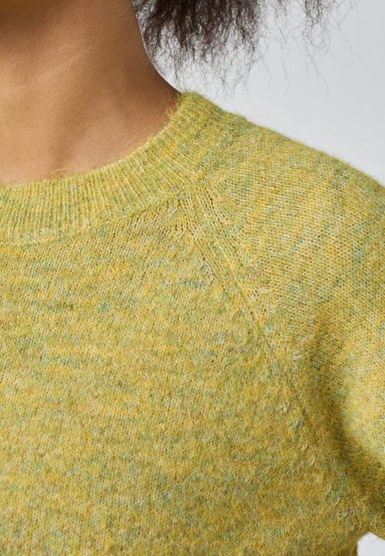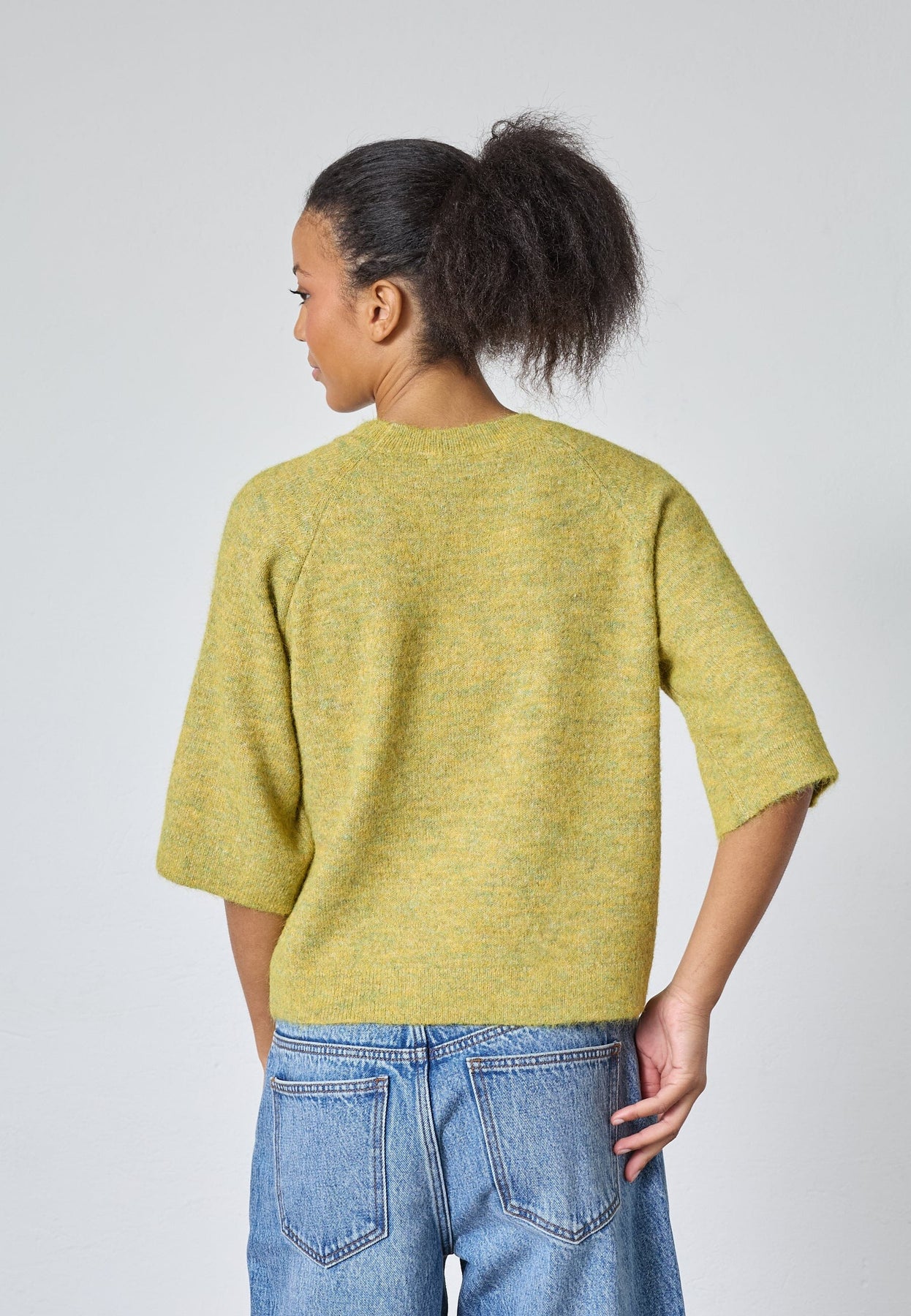 Pull en maille Sisters Point dans une nuance jaune-vert chinée. Le pull présente un col rond et une coupe ample avec de l’aisance au niveau du buste.