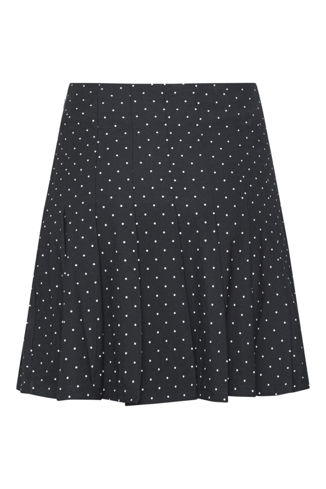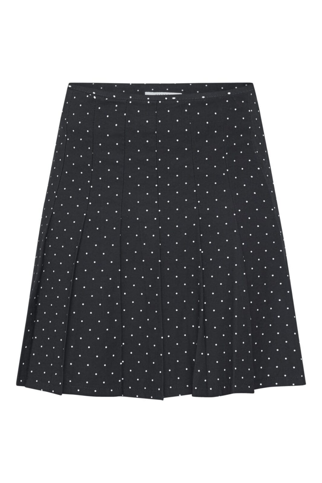 Jupe plissée noire à pois blancs de Sisters Point. La jupe courte a des plis tout autour et un motif à pois classique qui crée une expression structurée.