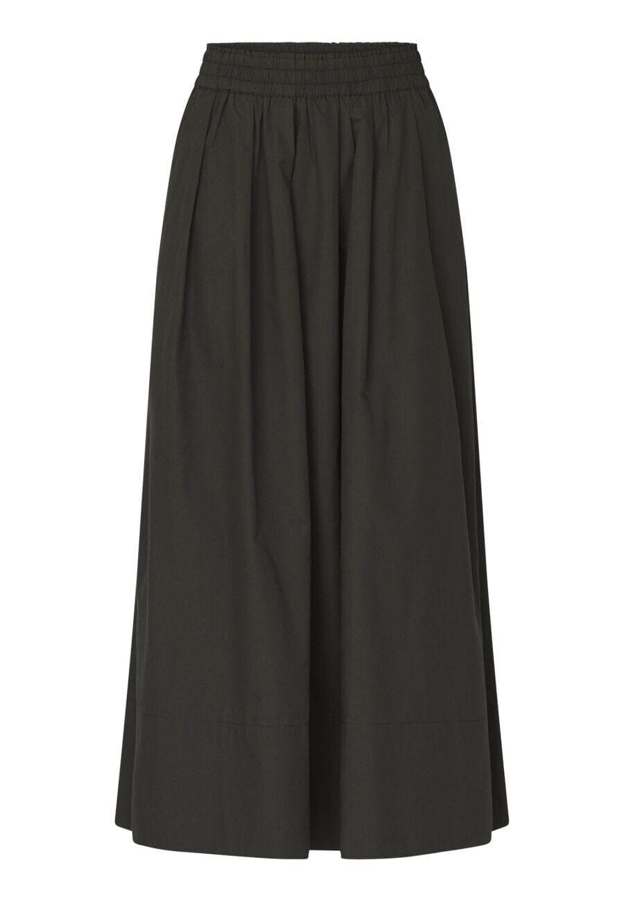 Jupe longue de Sisters Point en khaki. Elle a une coupe ample et une taille élastique avec des poches sur les côtés.