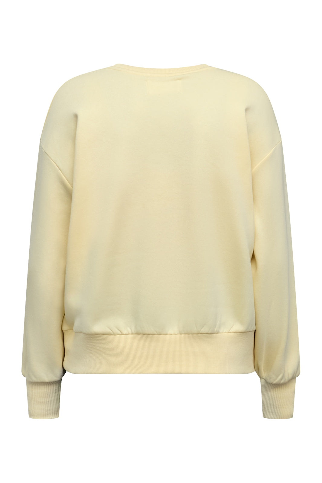 Un sweat-shirt jaune clair de Sisters Point, fabriqué en coton et polyester. Le sweat-shirt présente des détails brodés sur la poitrine et une coupe oversize.