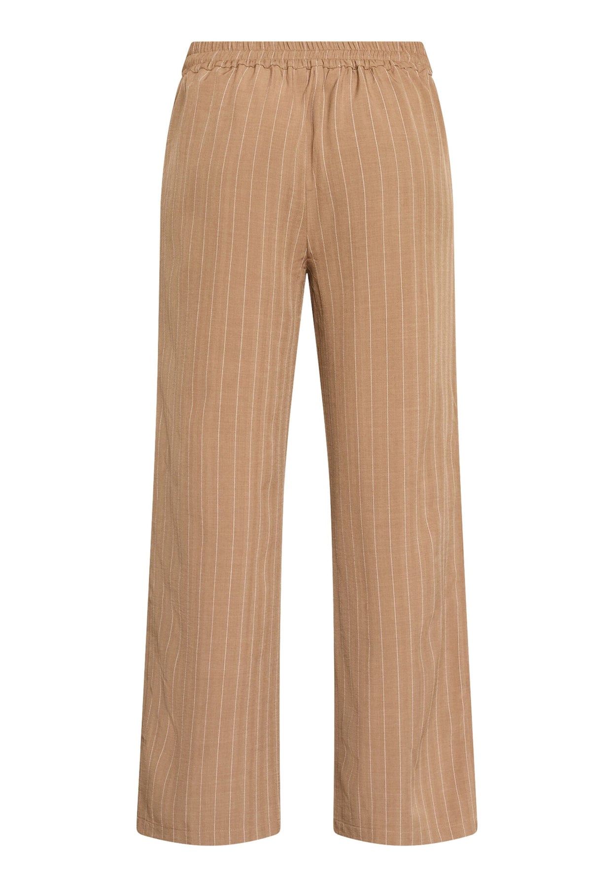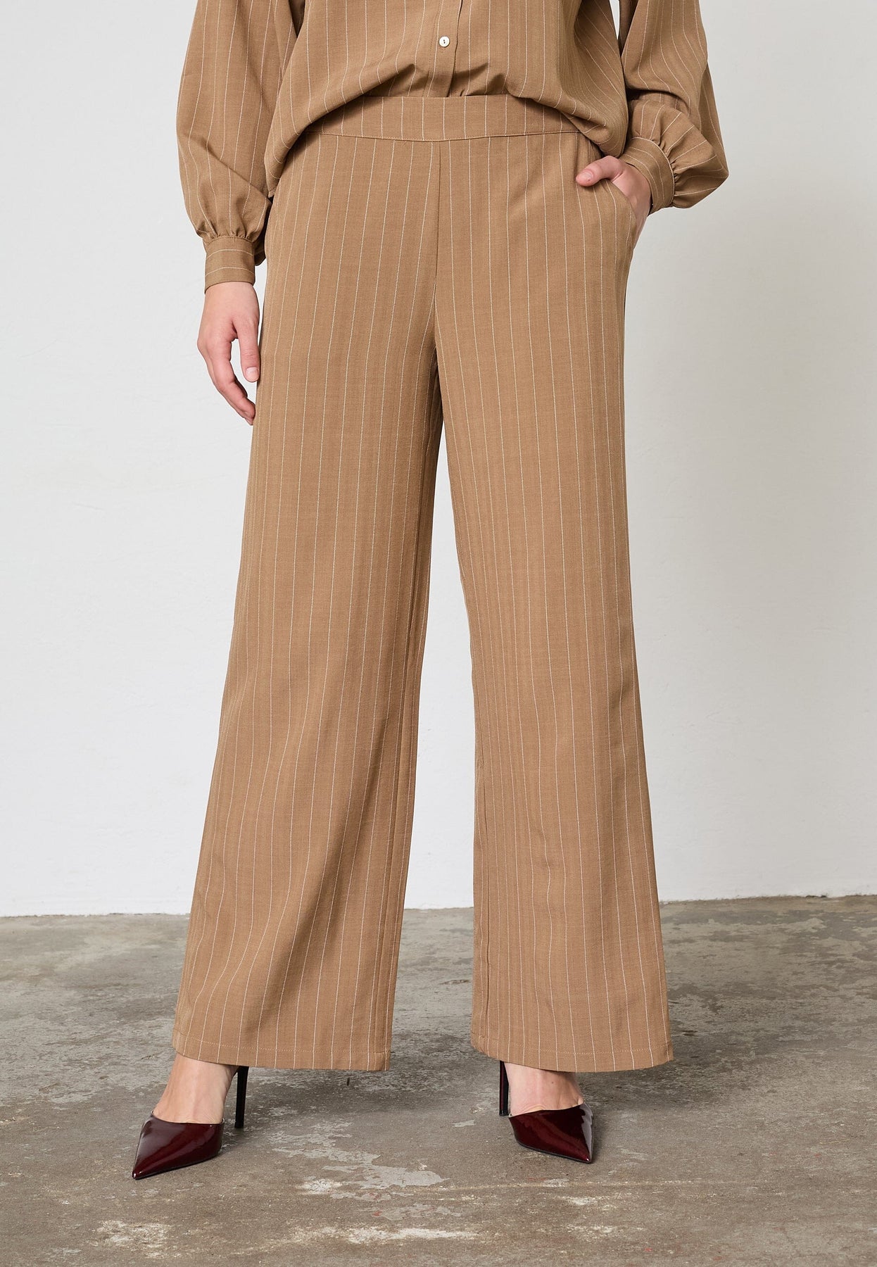 Pantalon marron à fines rayures de Sisters Point avec jambes larges et taille haute. Le pantalon convient aux fêtes, au quotidien et aux occasions formelles.