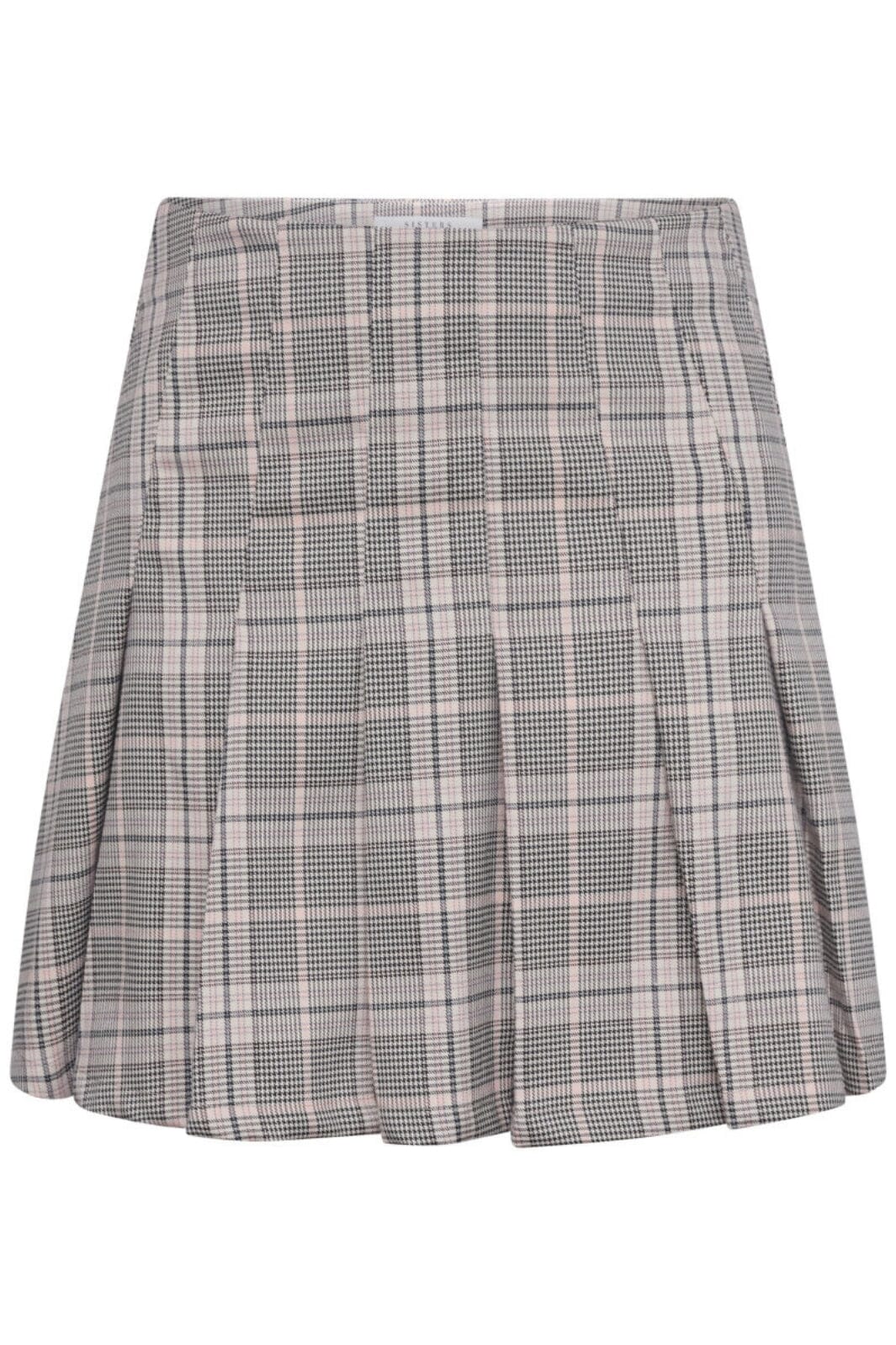 Jupe à carreaux de Sisters Point avec un design plissé à longueur de cuisse. La taille haute et le motif à carreaux dans des nuances de gris, rose et vert donnent à la jupe une expression douce et féminine.