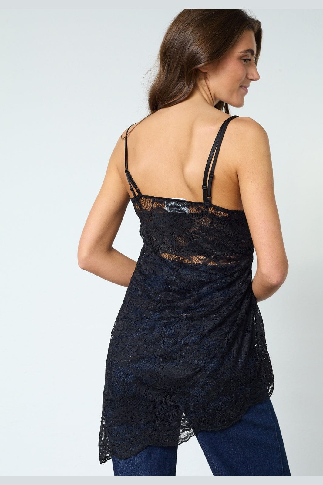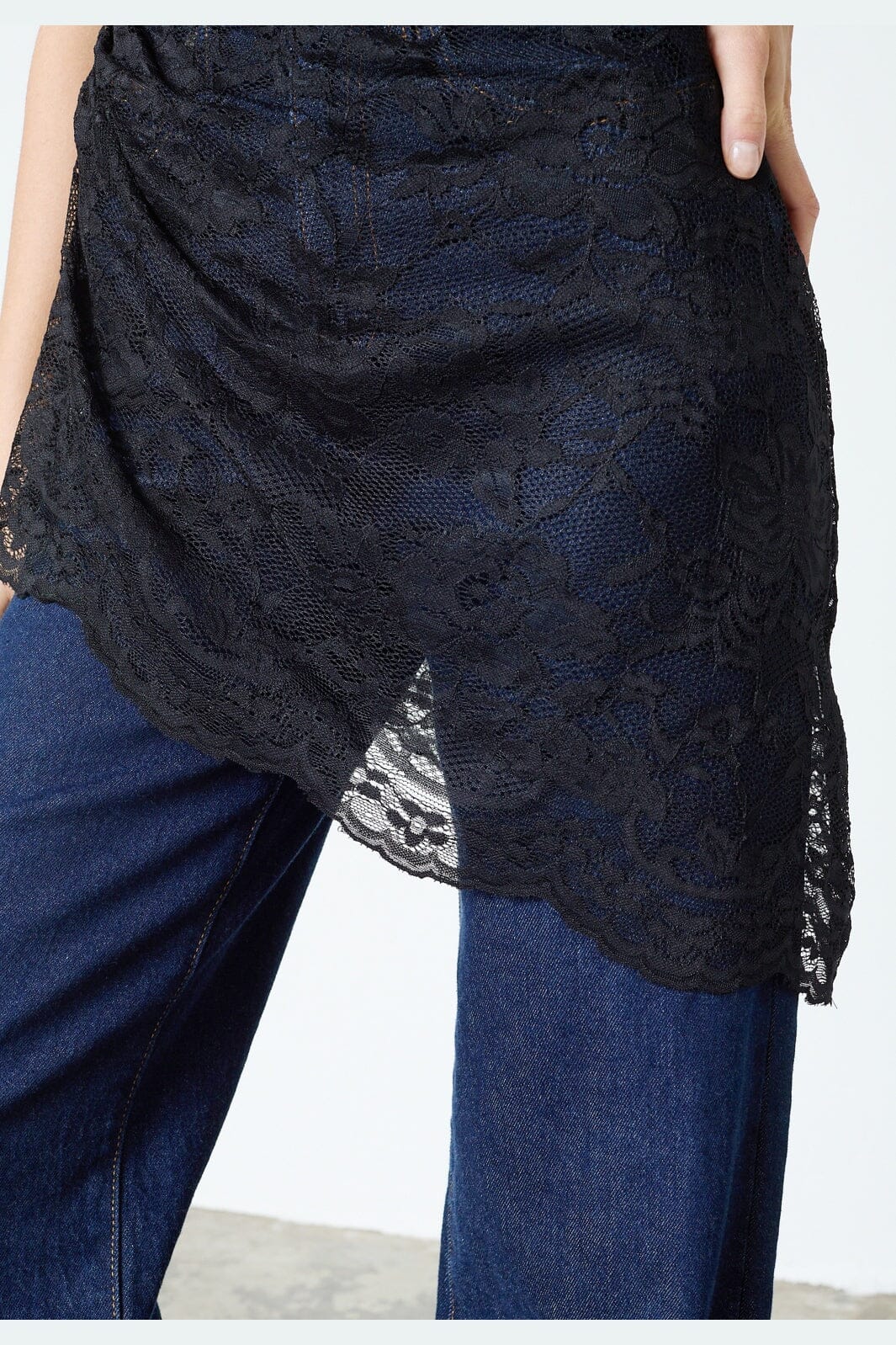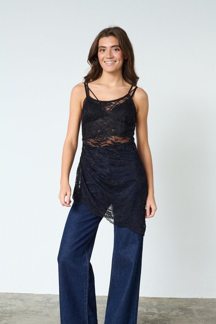 Robe en dentelle noire de Sisters Point avec motif floral. La robe est transparente et convient aussi bien pour des journées décontractées que pour des occasions festives.