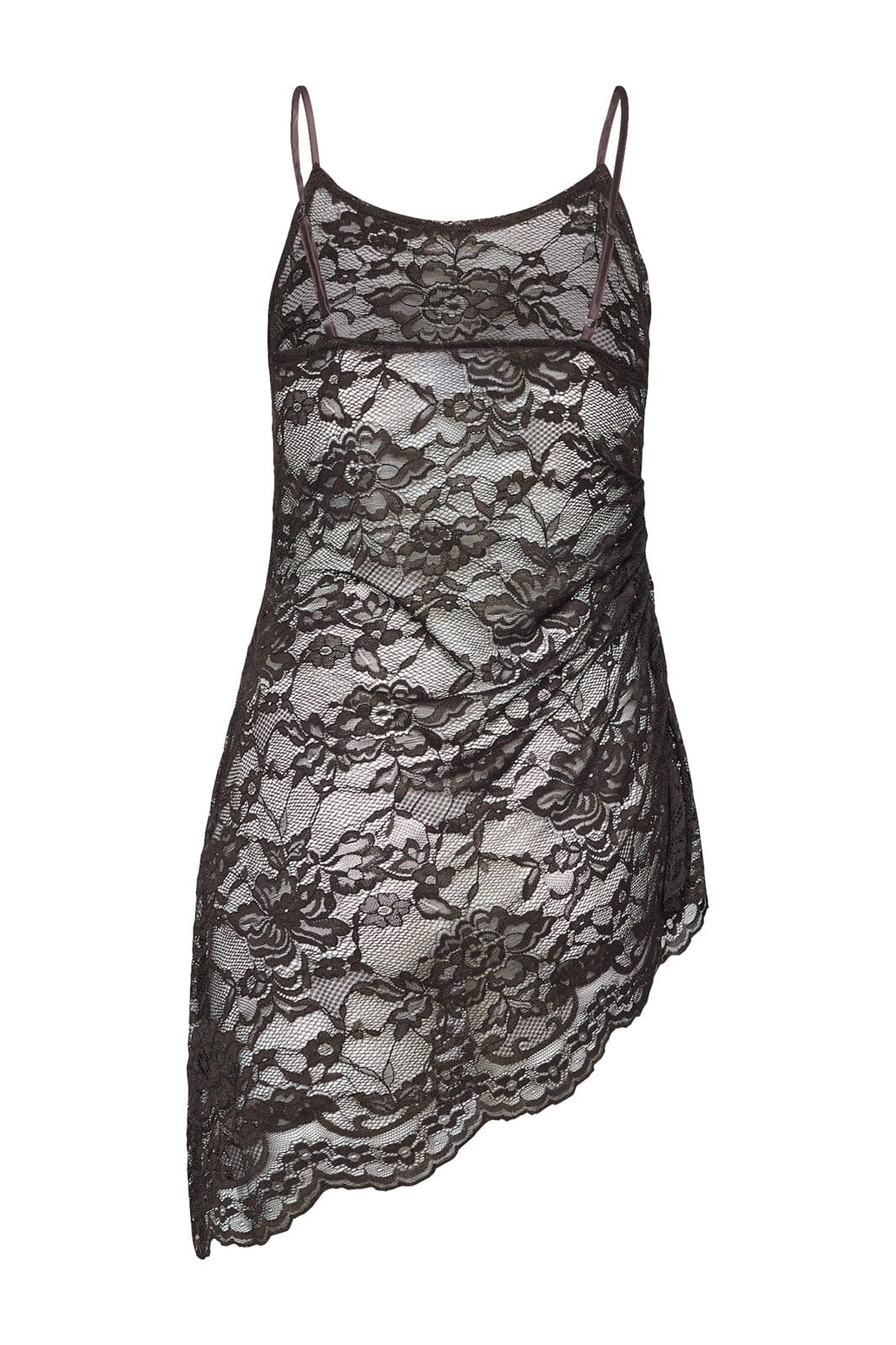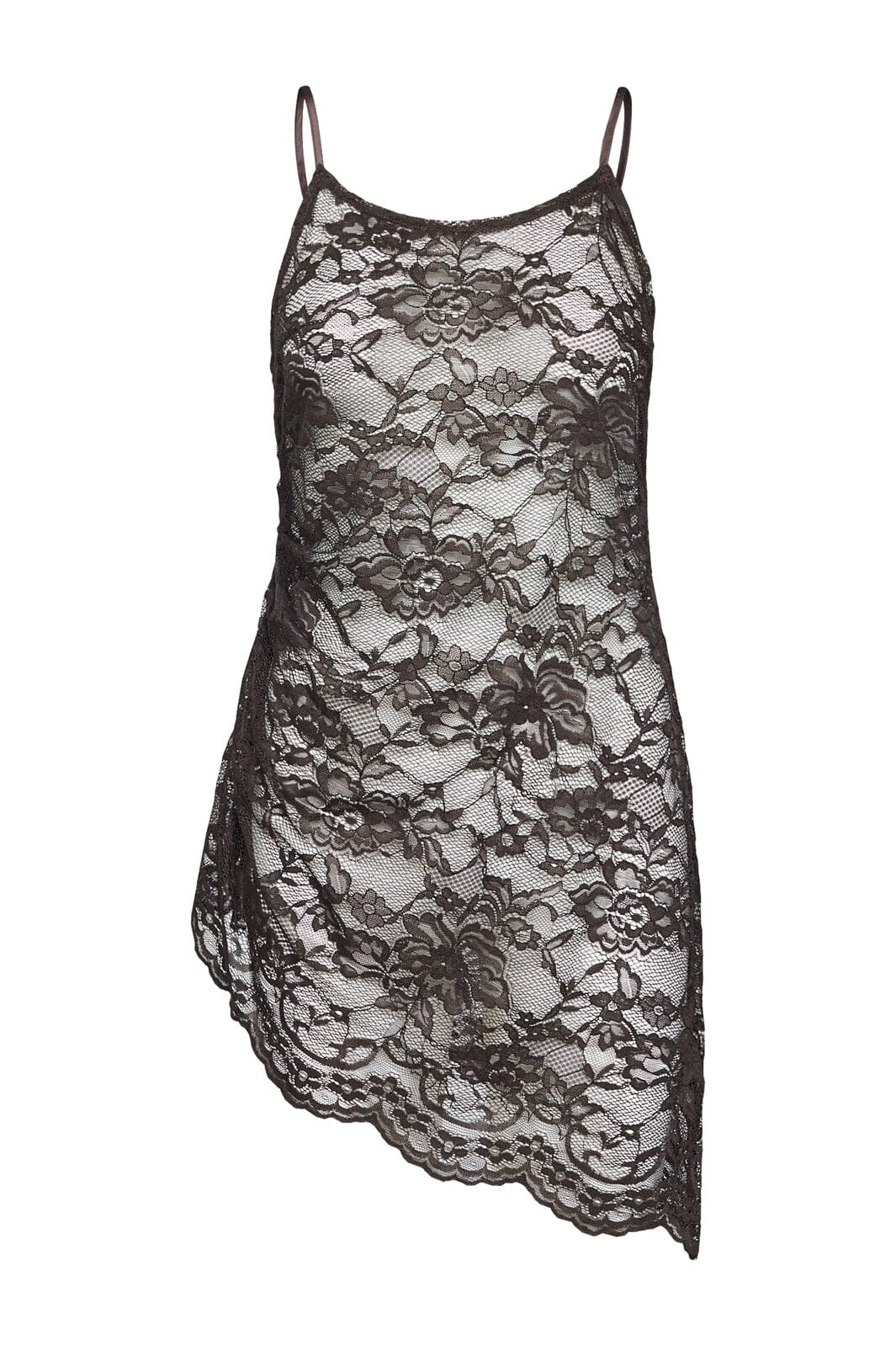 Robe en dentelle de Sisters Point dans une teinte brune profonde. La robe est transparente et présente un motif floral en dentelle couvrant entièrement.