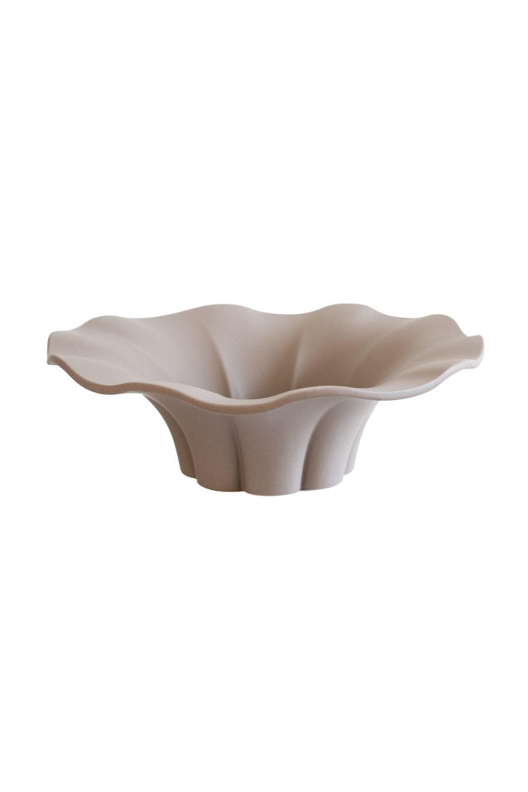 Bol en céramique couleur sable de Specktrum avec un bord ondulé et une surface mate. Le bol est fabriqué selon un artisanat traditionnel, ce qui donne à chaque pièce son propre caractère.