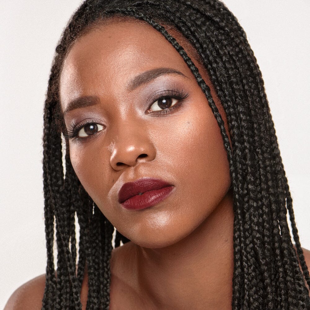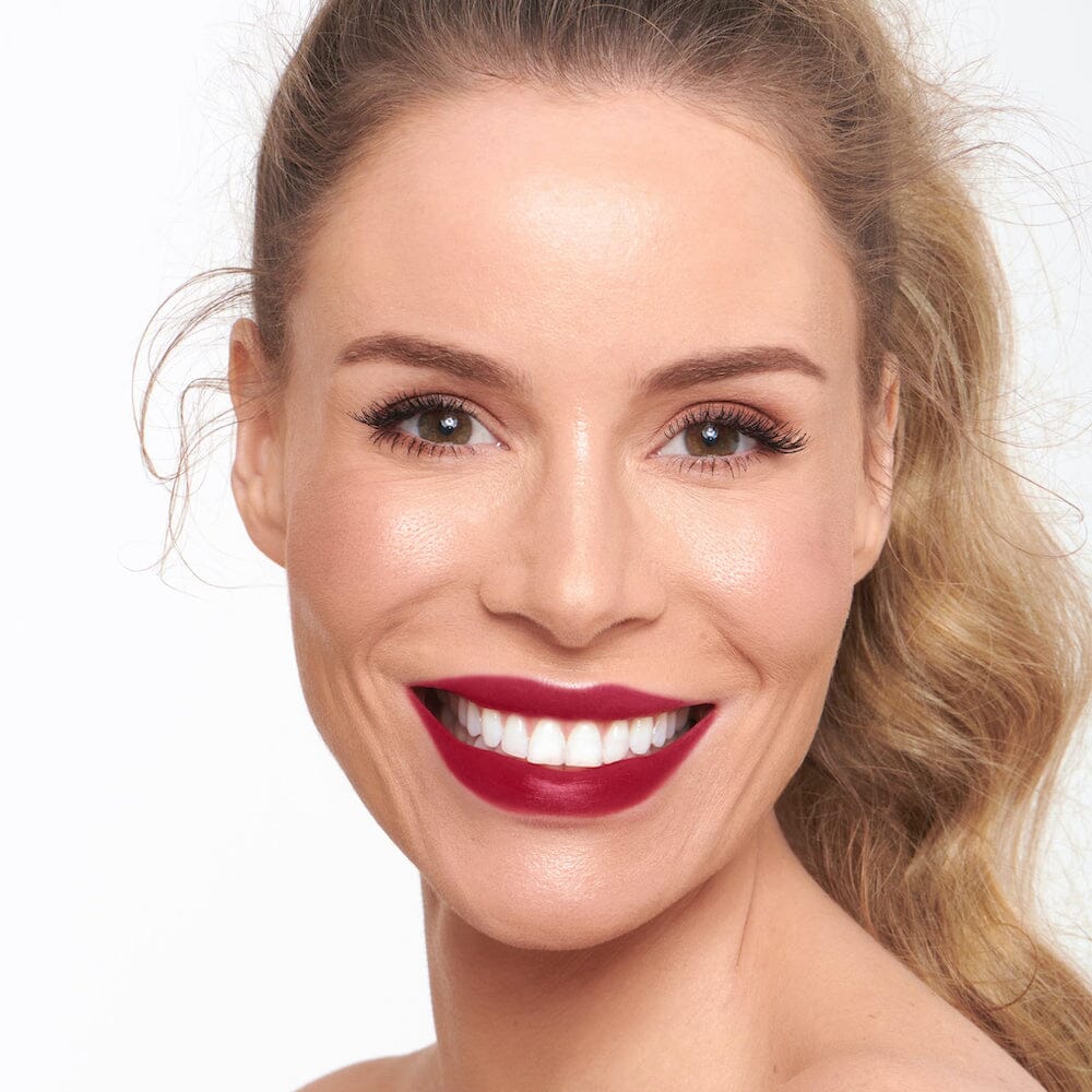 Rouge à lèvres à deux étapes dans une teinte rouge bordeaux profonde. Le système se compose d'une teinture à lèvres et d'un activateur qui ensemble offrent une couleur durable.