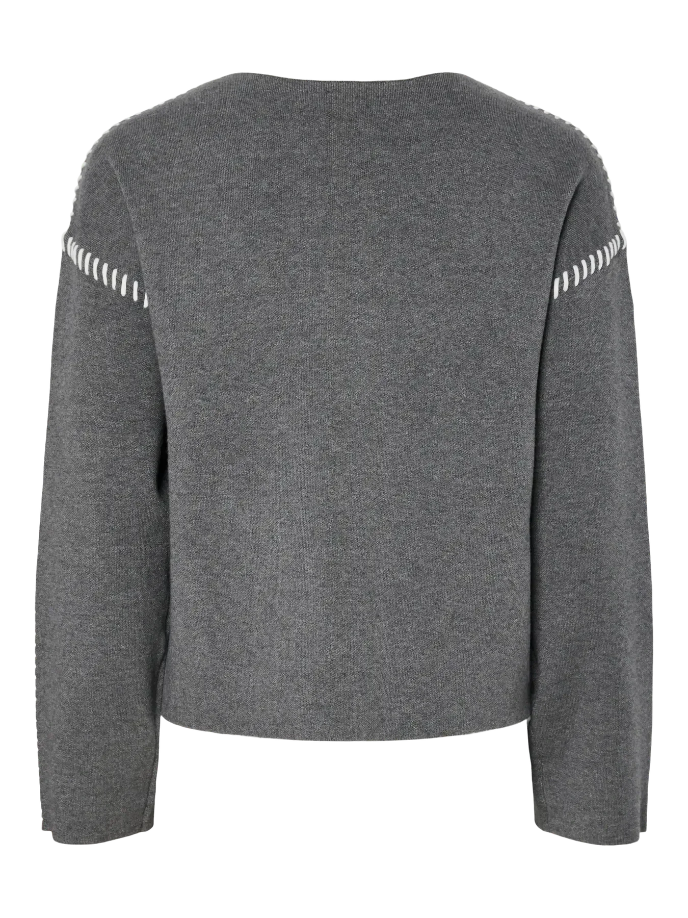 Y.A.S Yasstitcha Ls Knit Pullover Couleur: 4841745 Medium Grey Melange Birch Stitches