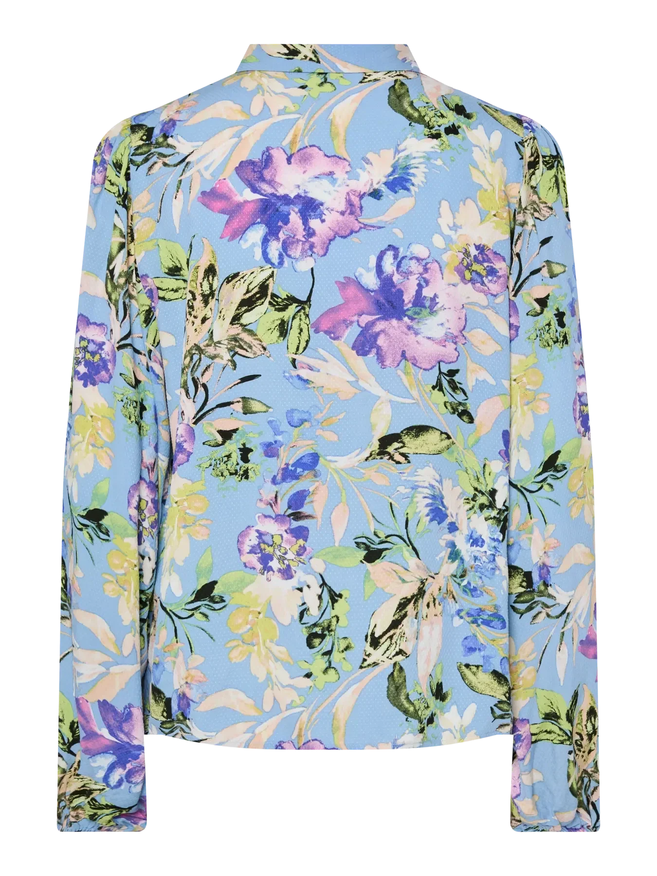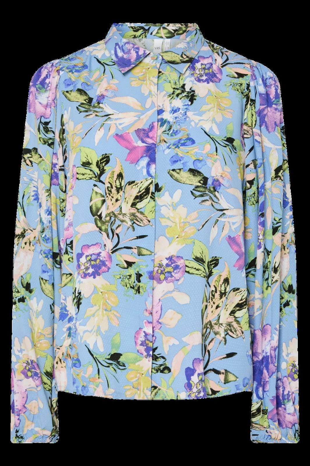 Chemise de YAS, confectionnée en 100% viscose Lenzing™ Ecovero™. L’imprimé fleuri dans des tons violets et bleu clair recouvre toute la surface de la chemise.