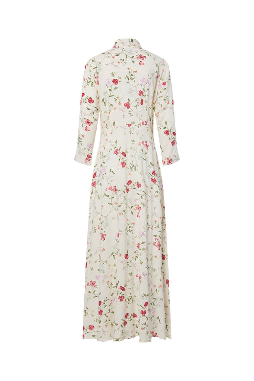 Robe YAS dans une teinte crème. Confectionnée en 65% polyester recyclé et 35% coton, avec un col montant et un détail à nouer.